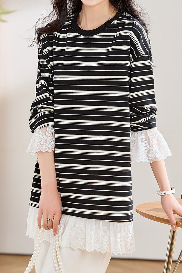Casual Lace Patchwork Fake Two-Piece Hoodie