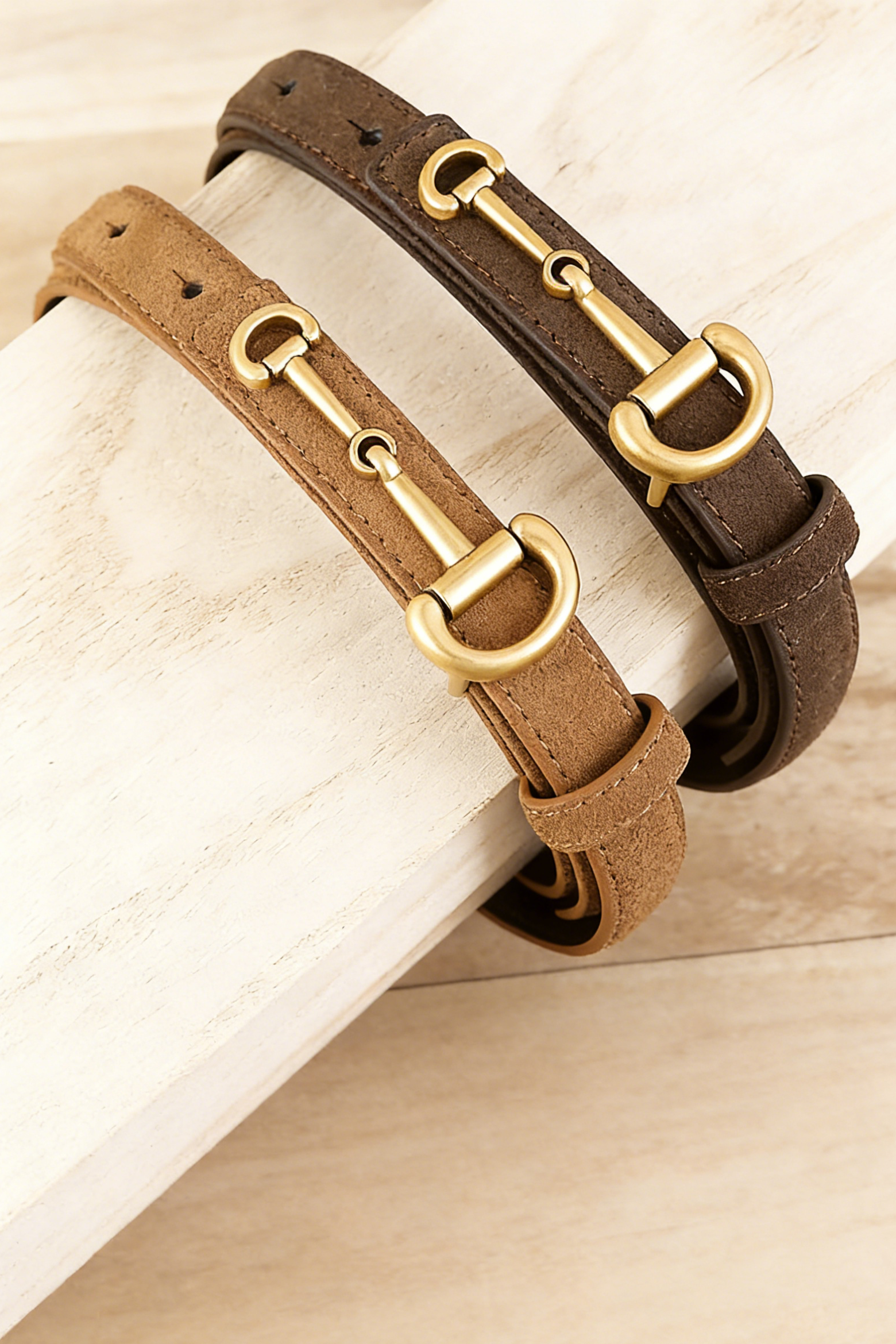 Casual Minimalist Genuine Leather Horseshoe Buckle Belt
