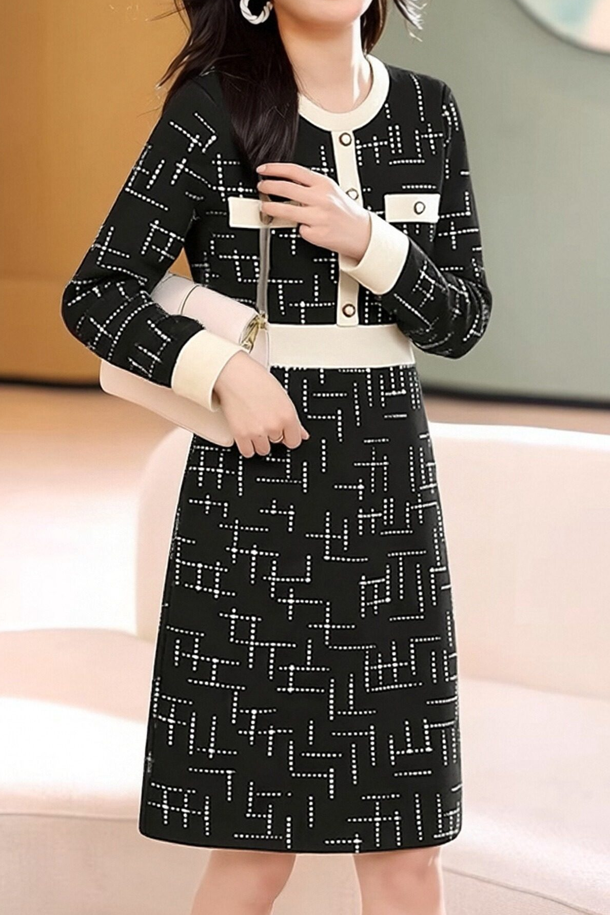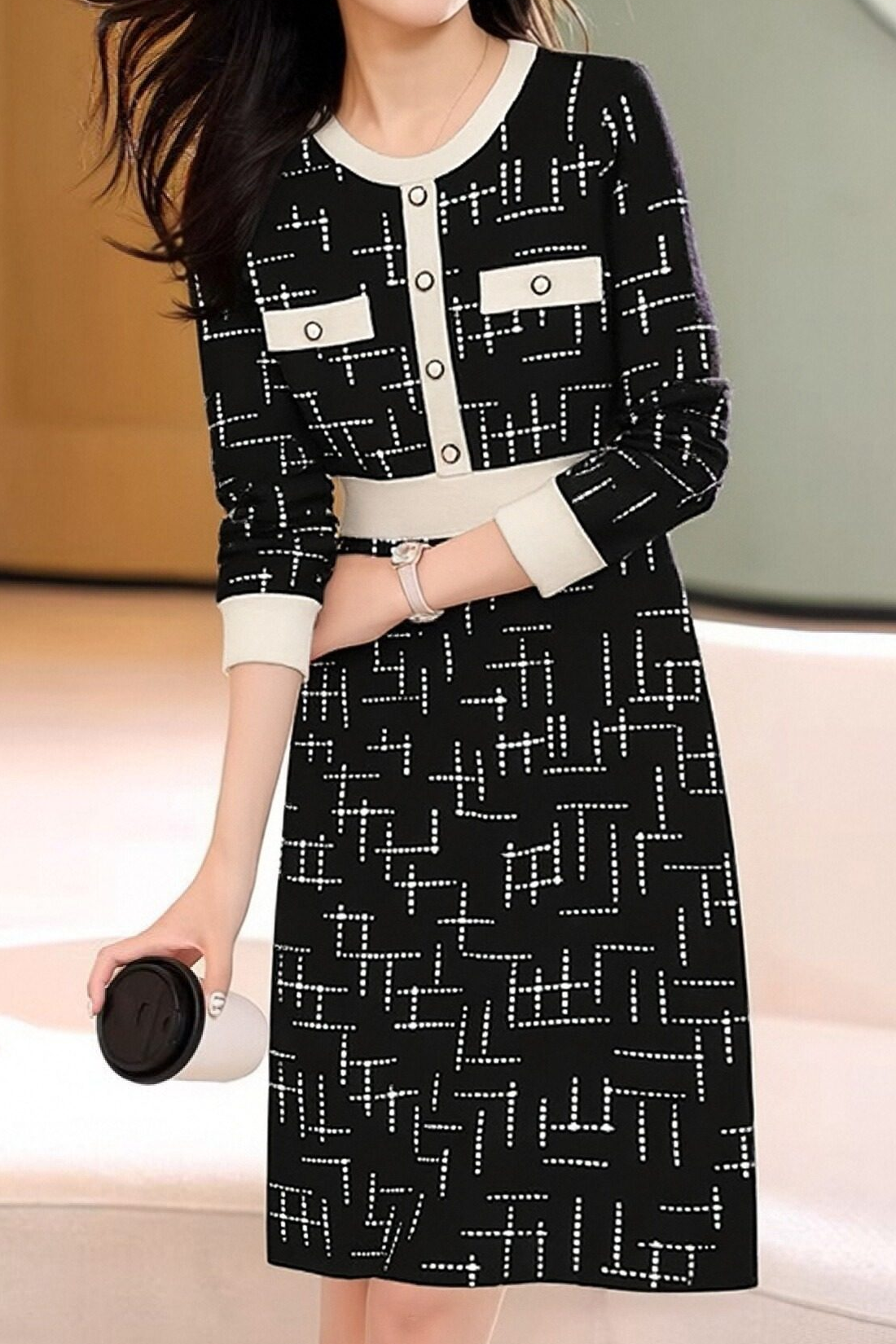 Elegant Temperament Crew Neck Mid-Length Knitted Dress