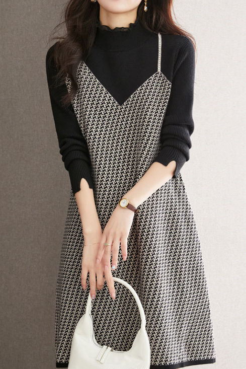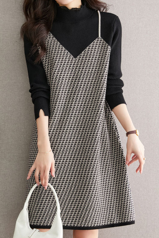 Casual Elegant Mock Neck Long-Sleeve Knitted Dress