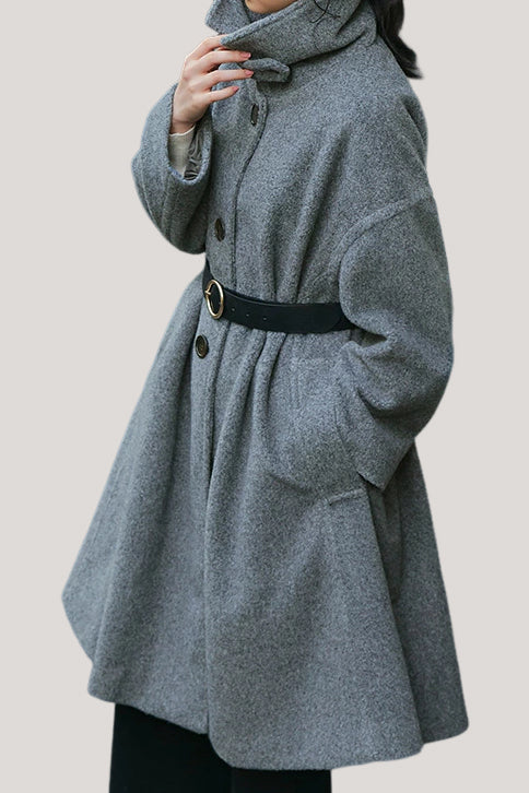 Elegant Mock Neck Waist-Cinched A-Line Knitted Dress