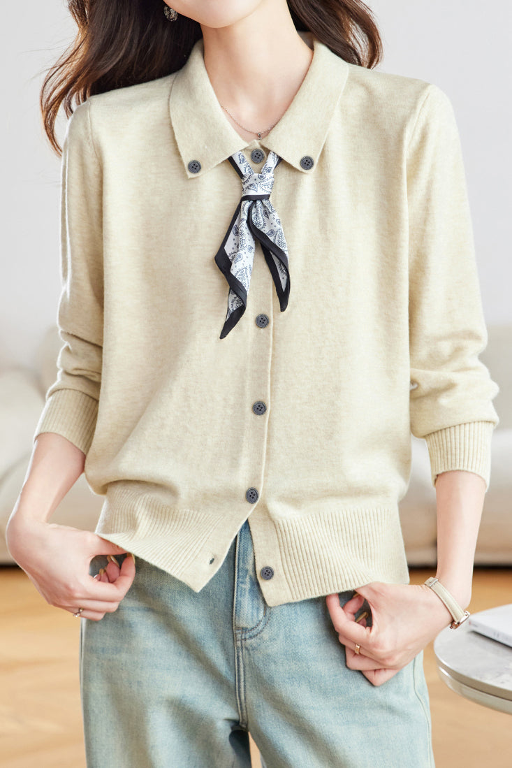 Casual Shirt Cardigan Fake Two-Piece Knitted Sweater