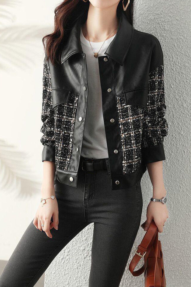Casual Versatile Lapel Color-Block Knitted Cardigan