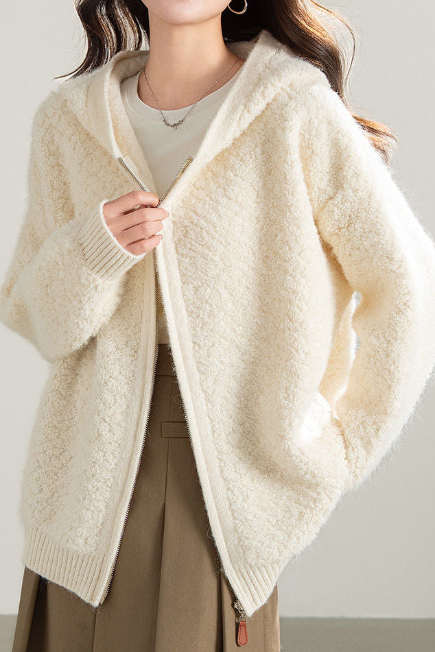 Casual Versatile Fleece Hooded Cardigan