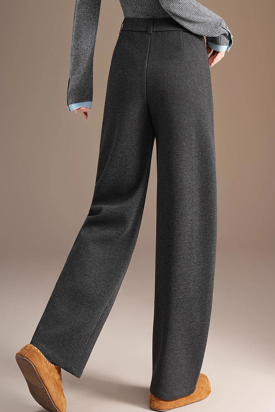 Casual Versatile Solid-Color Curved Hem Fleece Pants - liwisi