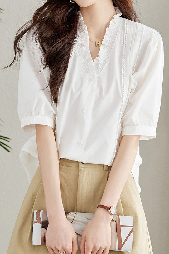 Casual Ruffle V-Neck Short Sleeve Shirt