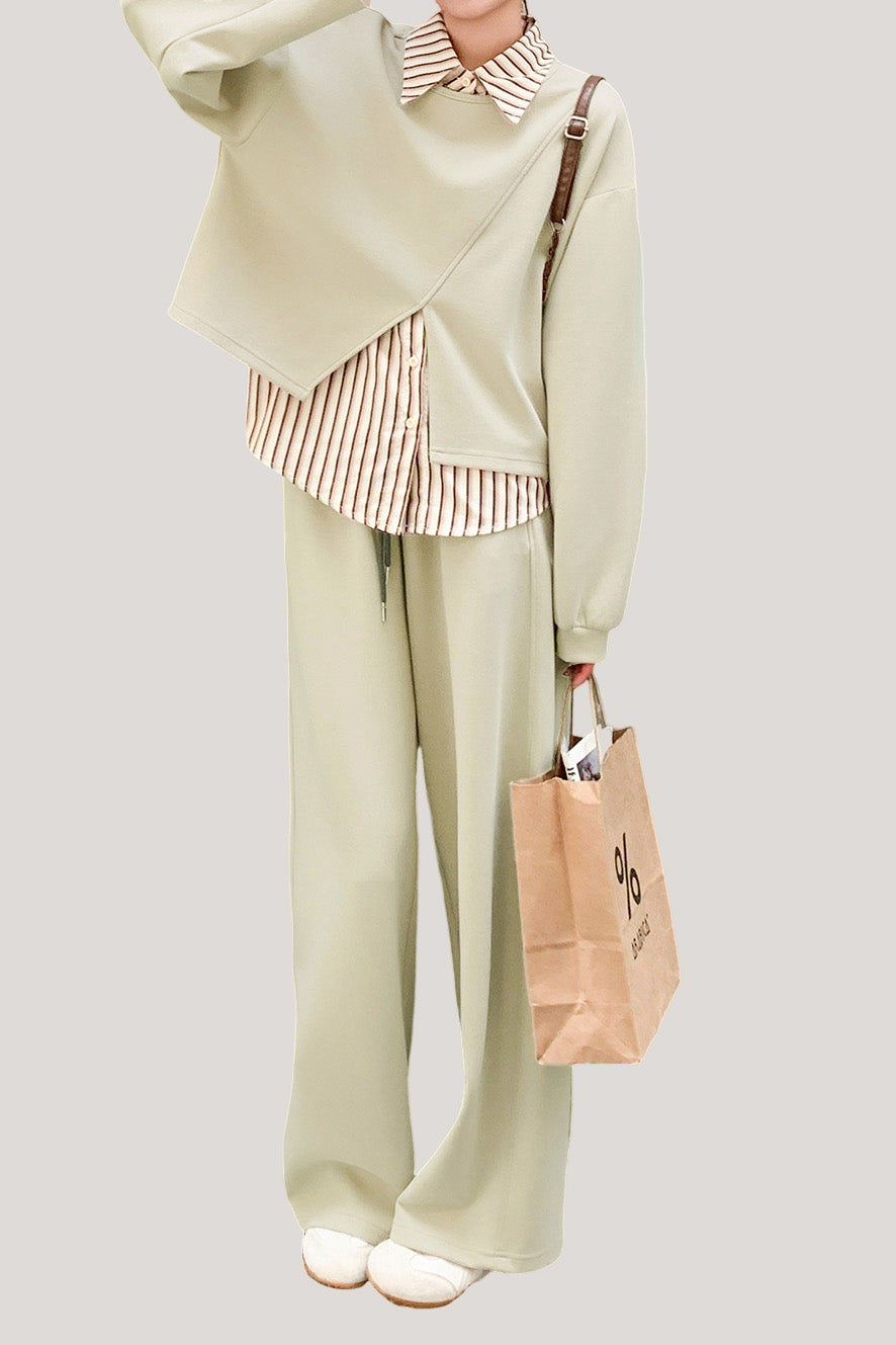 Casual Versatile Striped Sweatshirt and Pants Three-Piece Set