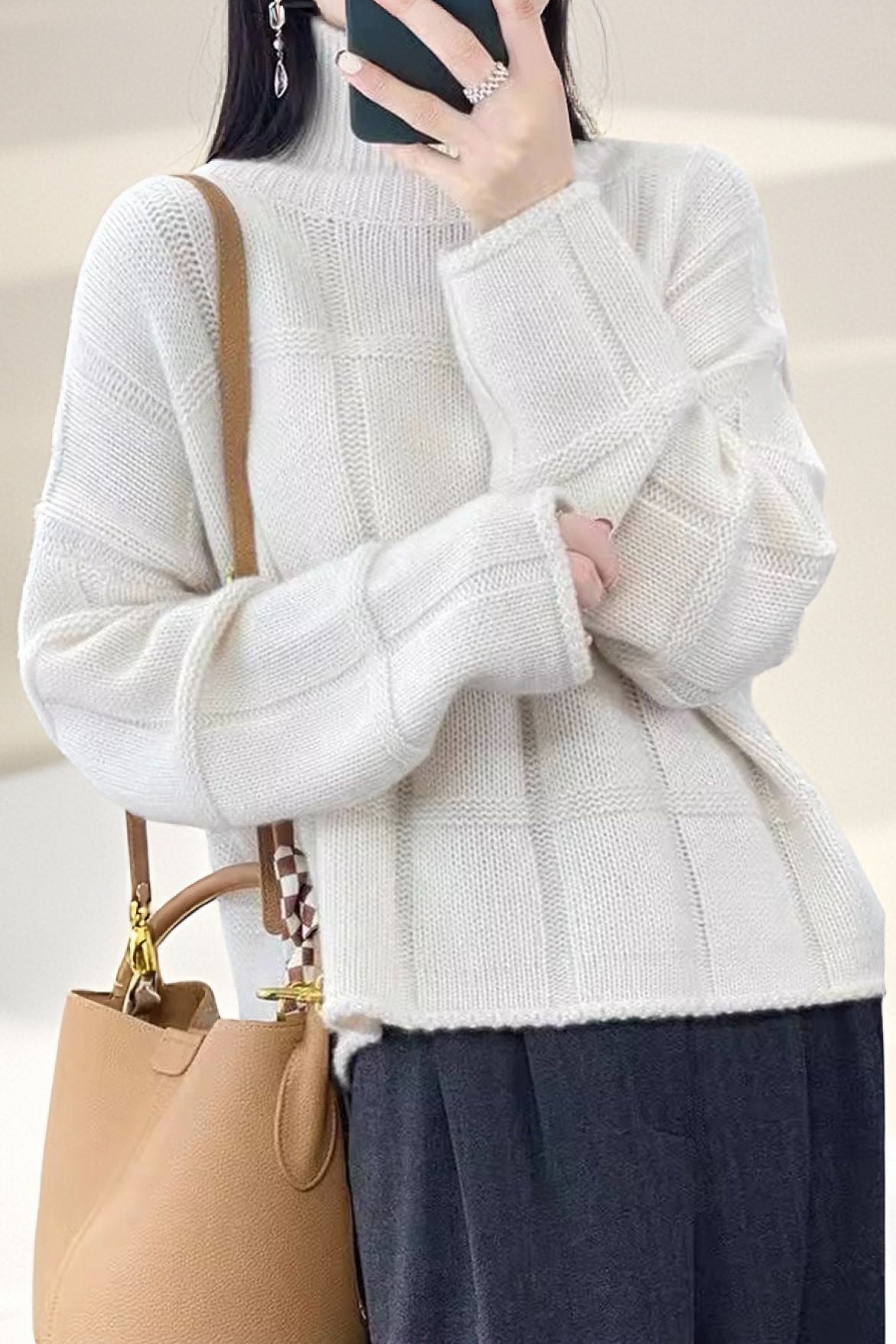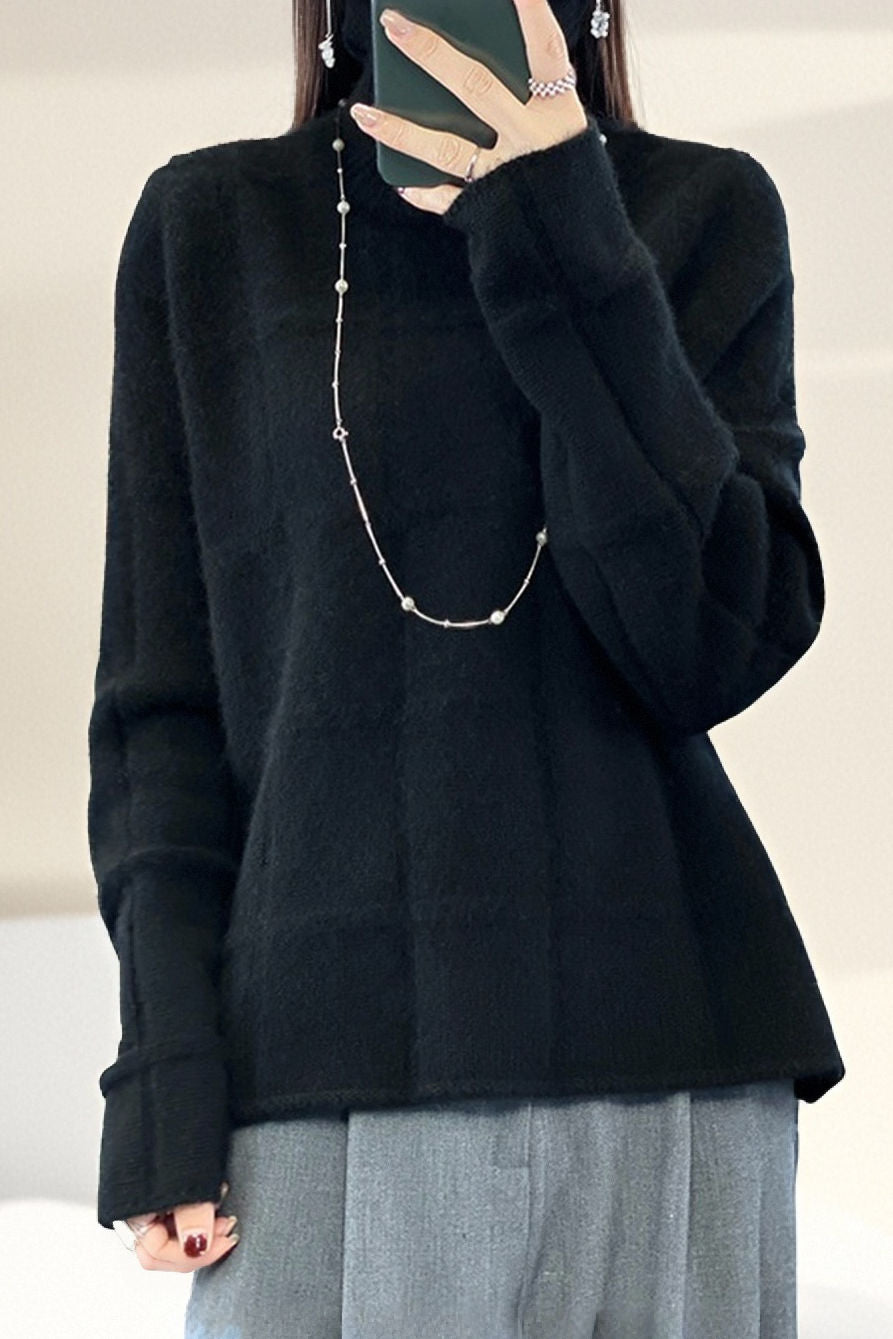 Casual Versatile Plaid Turtleneck Long-Sleeve Pullover Sweater