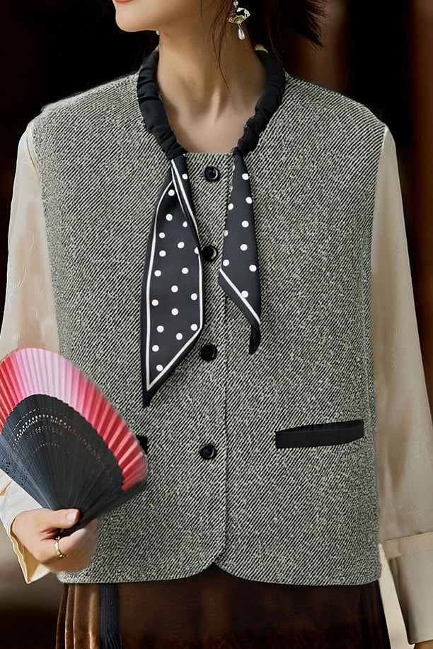 Casual Versatile Color-Block Polka Dot Scarf Vest