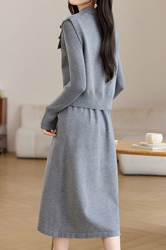 Casual Vest Lapel Minimalist Knitted Skirt Set