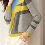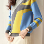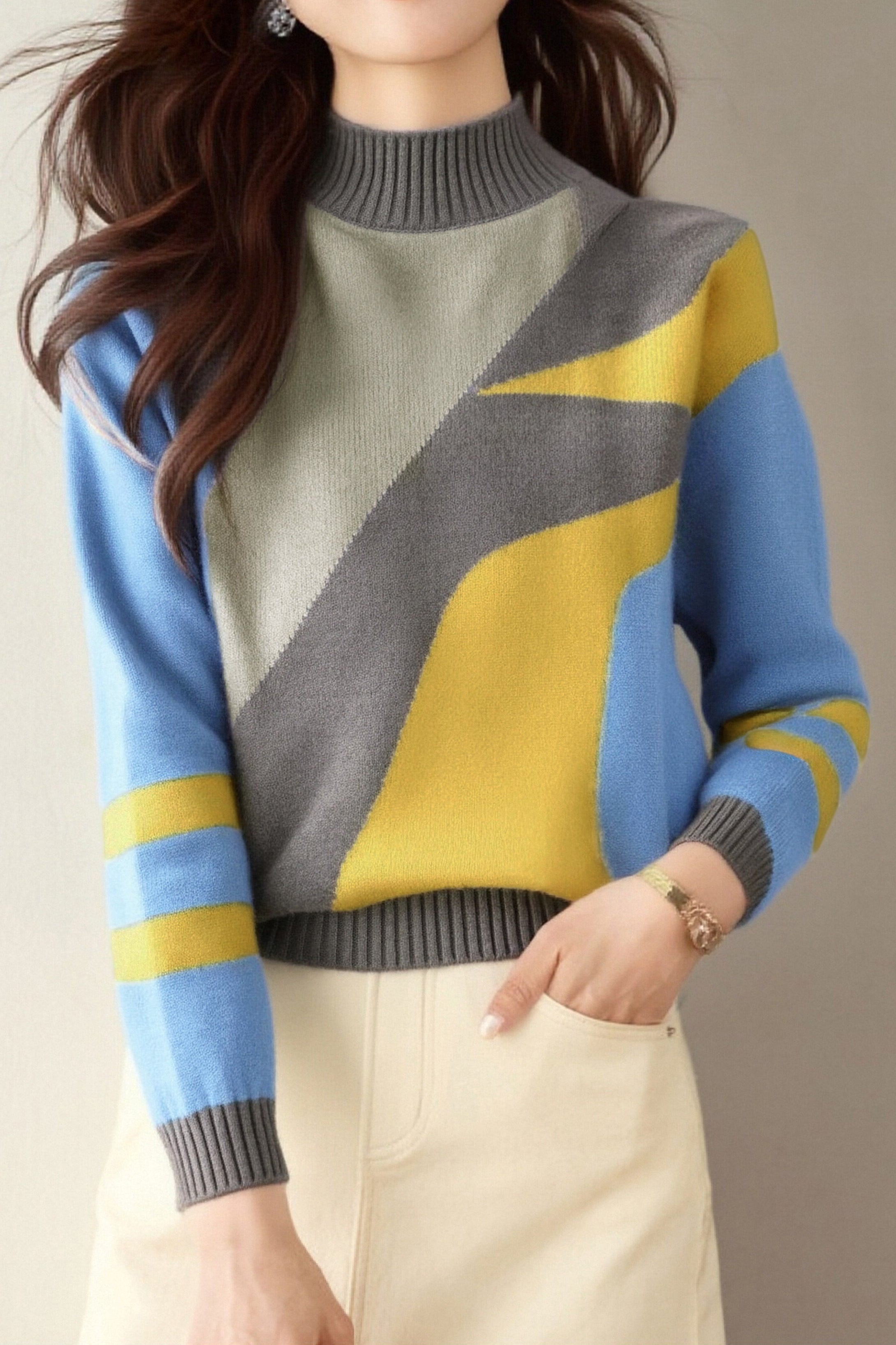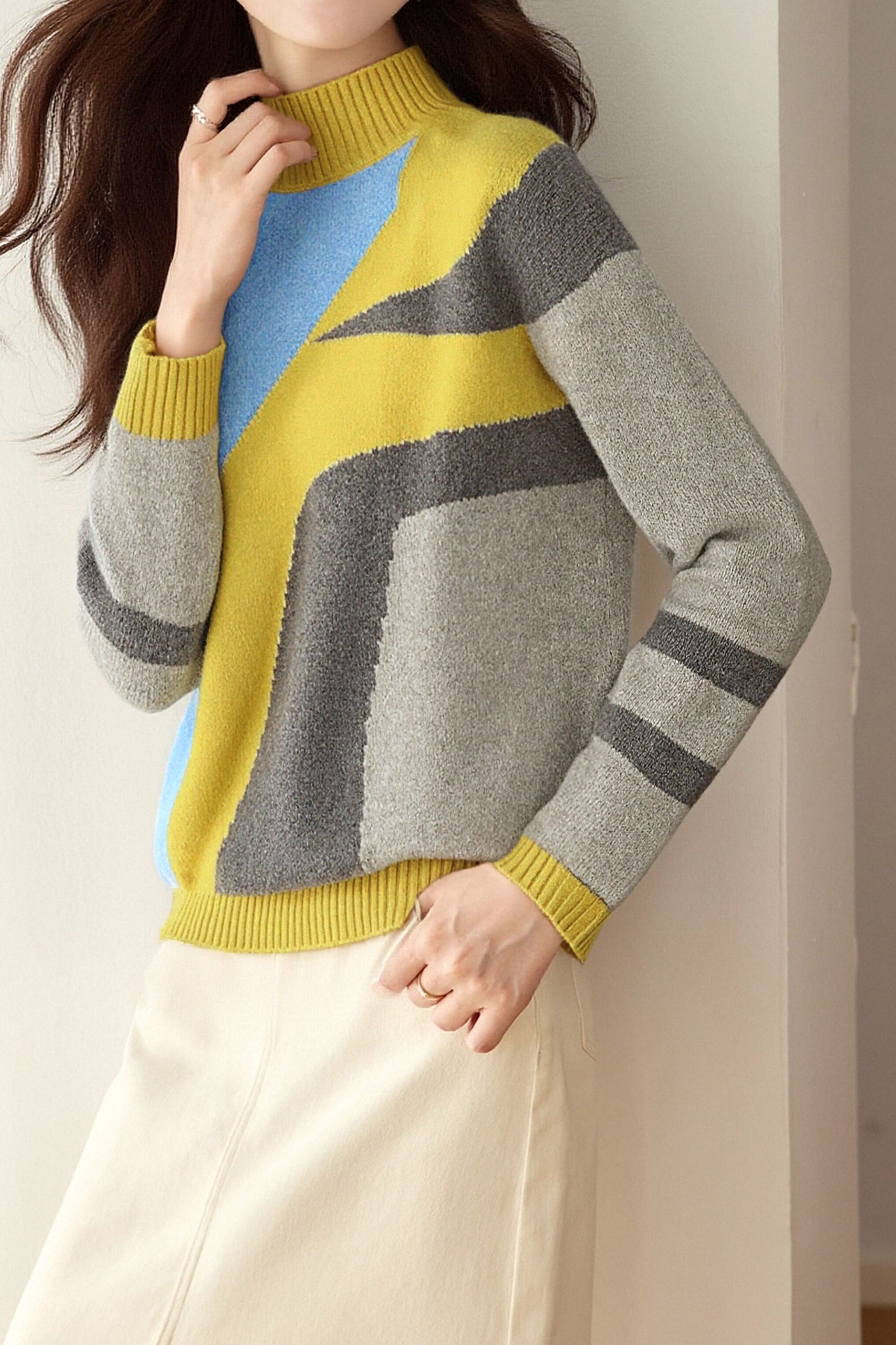Casual Versatile Geometric Color-Block Half-High Neck Sweater