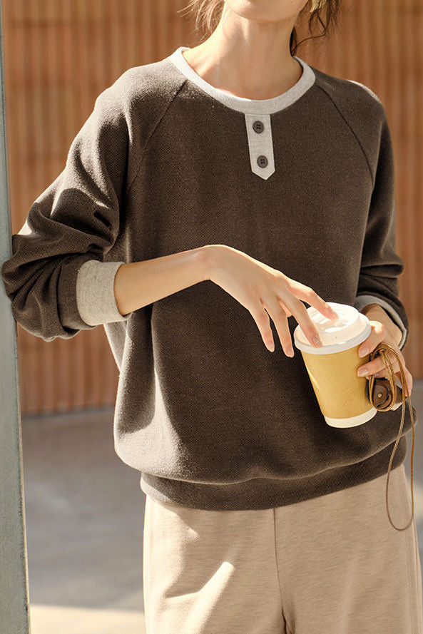 Casual Versatile Color-Block Cardigan with Four Patch Pockets