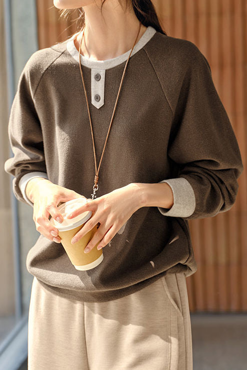 Casual Crew Neck Brushed Color-Block Textured Knitted Top