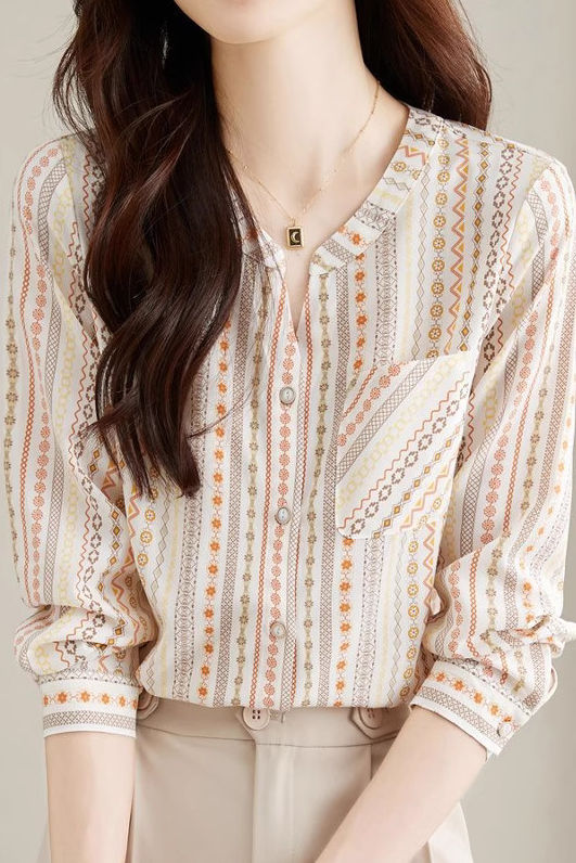 V-Neck Long-Sleeve Striped Versatile Shirt