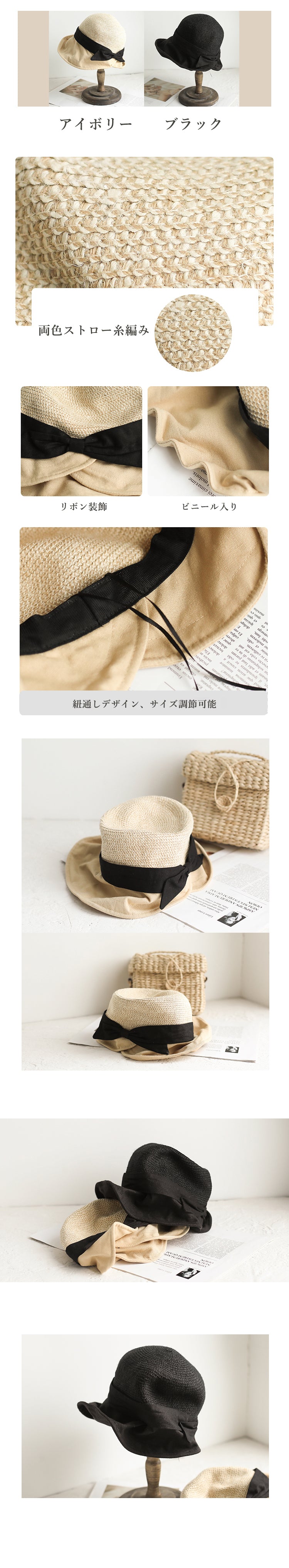 Back ribbon, mixed materials, cotton-linen material, straw material, foldable, convenient to carry, sun protection, UV protection, ultraviolet protection, UV cut, resort |