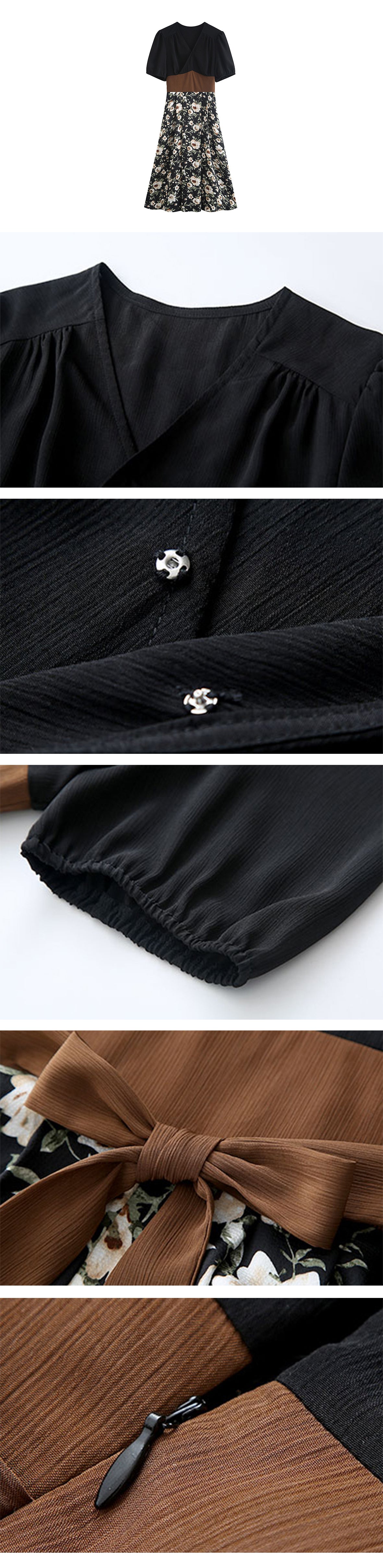無地、ボタン付き、サイドファスナー開く、サープリスネック、半袖 |