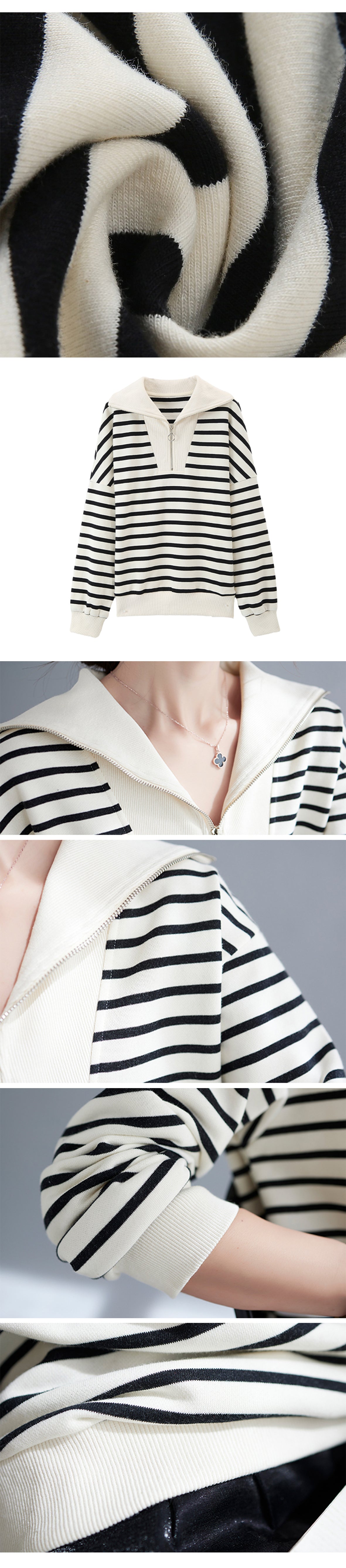 The half zip design makes this high neck striped sweat convenient.