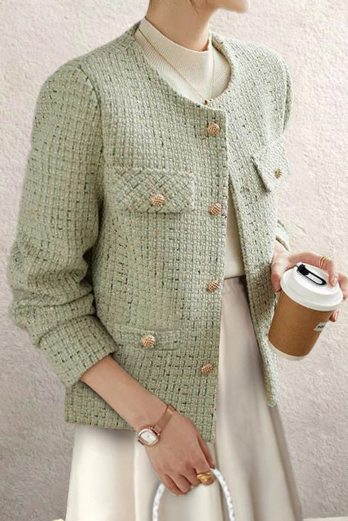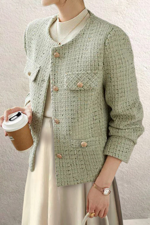 Outerwear,Round Neckline,Long Sleeves,Button Front Placket,Side Pockets,Decorative Metal Buttons |
