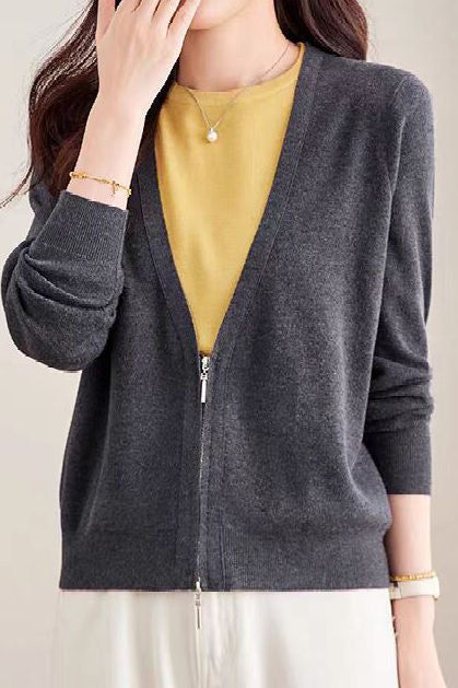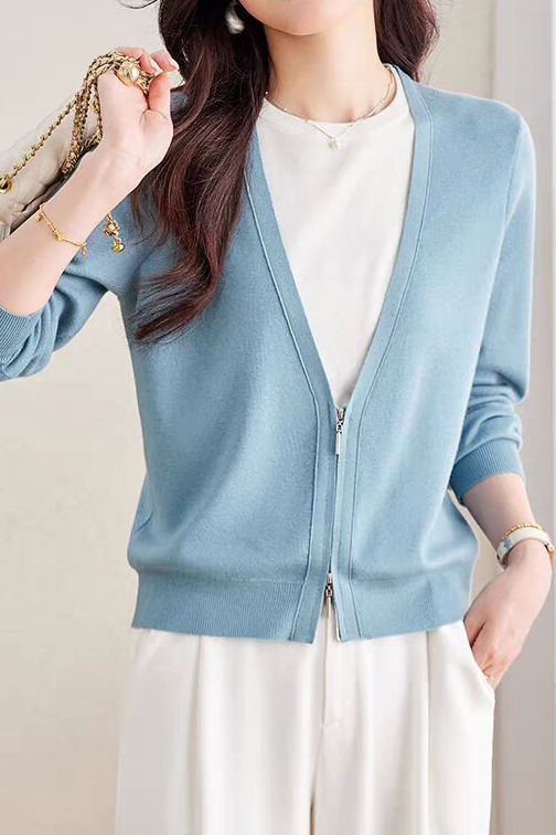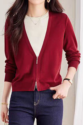 Knit Top, Crew Neck Long Sleeves, Fake Two-Piece Design (Zip Cardigan & Pullover Knit Top Combination) |