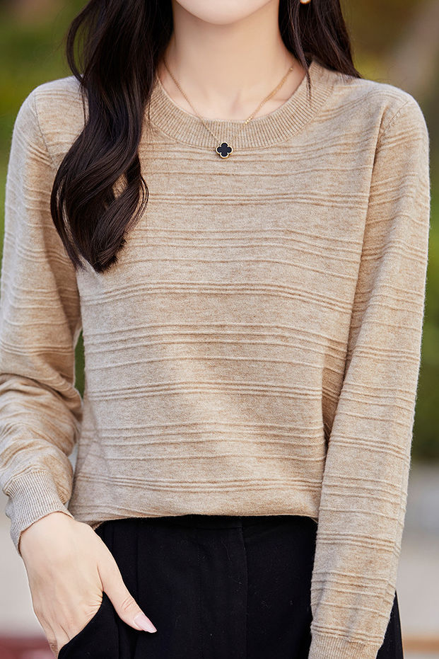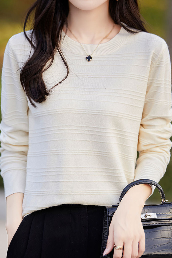 Knit Top, Crew Neck Long Sleeves, Striped Textured Fabric |