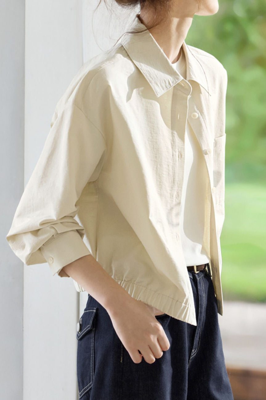 Jacket, Lapel Collar Long Sleeves, Double-Zip Closure on Placket, Pocket Design on Left Chest, Button Closure Design on Cuffs, Elastic Design at Hem |