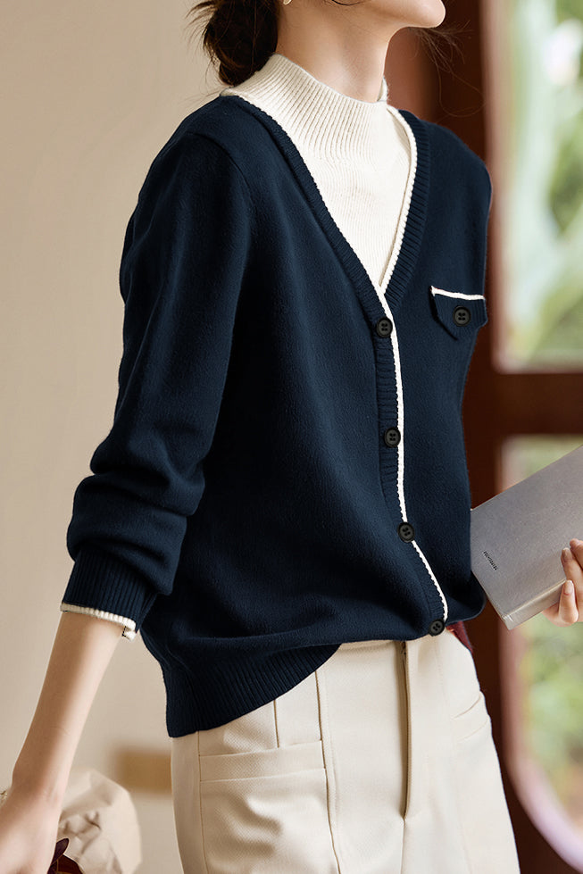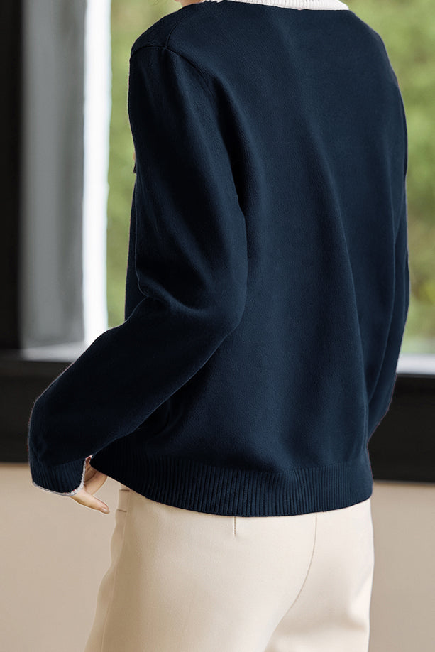 Casual Commuter Faux Two-Piece Color-Blocked Knit Top