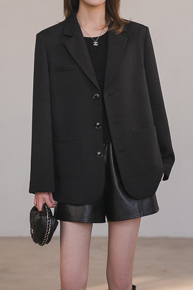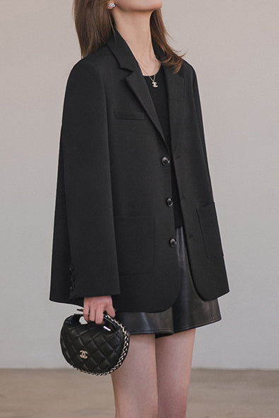 Blazer, suit collar long sleeves, front single-button closure, decorative buttons at cuffs, side pocket design, back vent, with bow decoration |