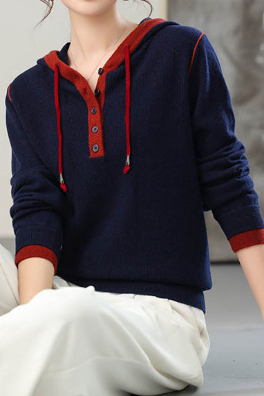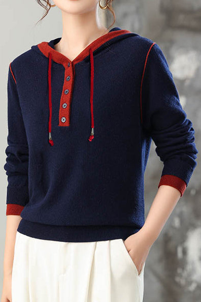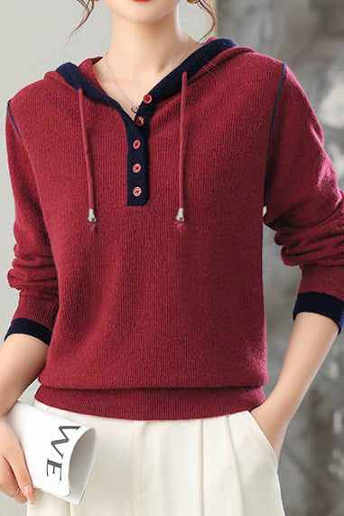Casual Versatile Hooded Knit Top