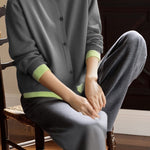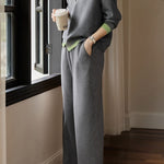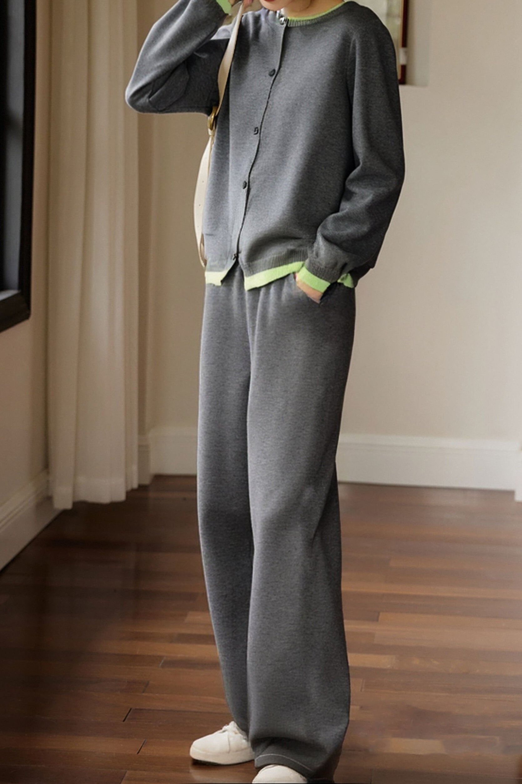 Casual Color-Block Trim Knitted Cardigan & Pants 2-Piece Set