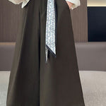 Cropped wide-leg pants,front with unbuttonable buttons and unzippable zipper,back waist with elastic,front waist with pleated design,side insert pockets,cropped wide-leg fit,with adjustable scarf belt,solid color |