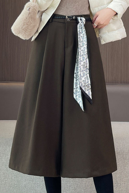 Office Versatile High-Waist Wool Blend Cropped Wide-Leg Pants