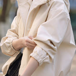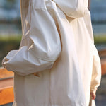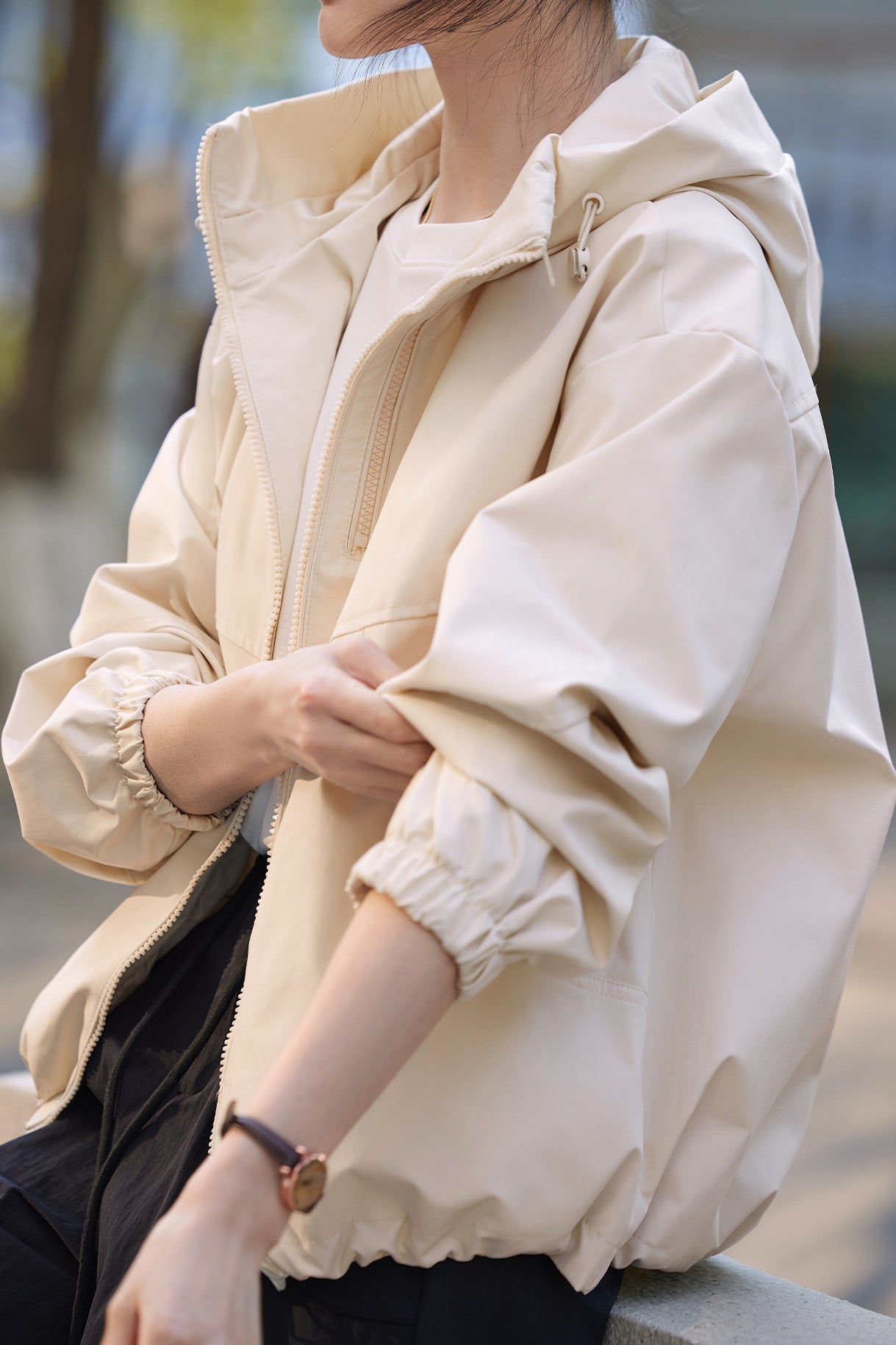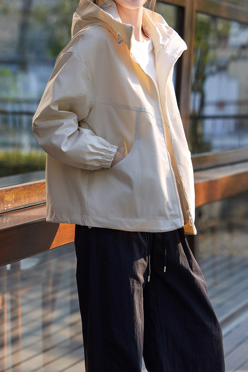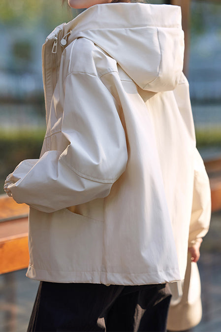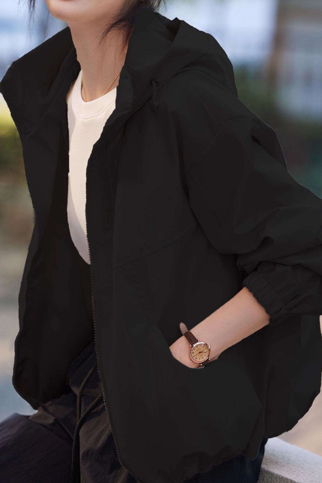 Coat,solid color,hooded loose long-sleeve fit,with drawstring design on hood and hem |