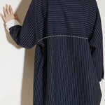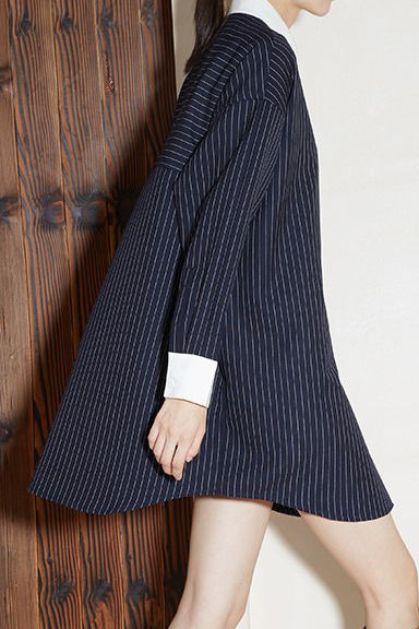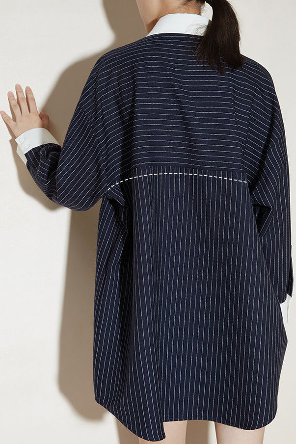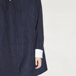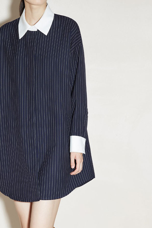 Dress,loose fit,shirt collar design matched with stripes on body |