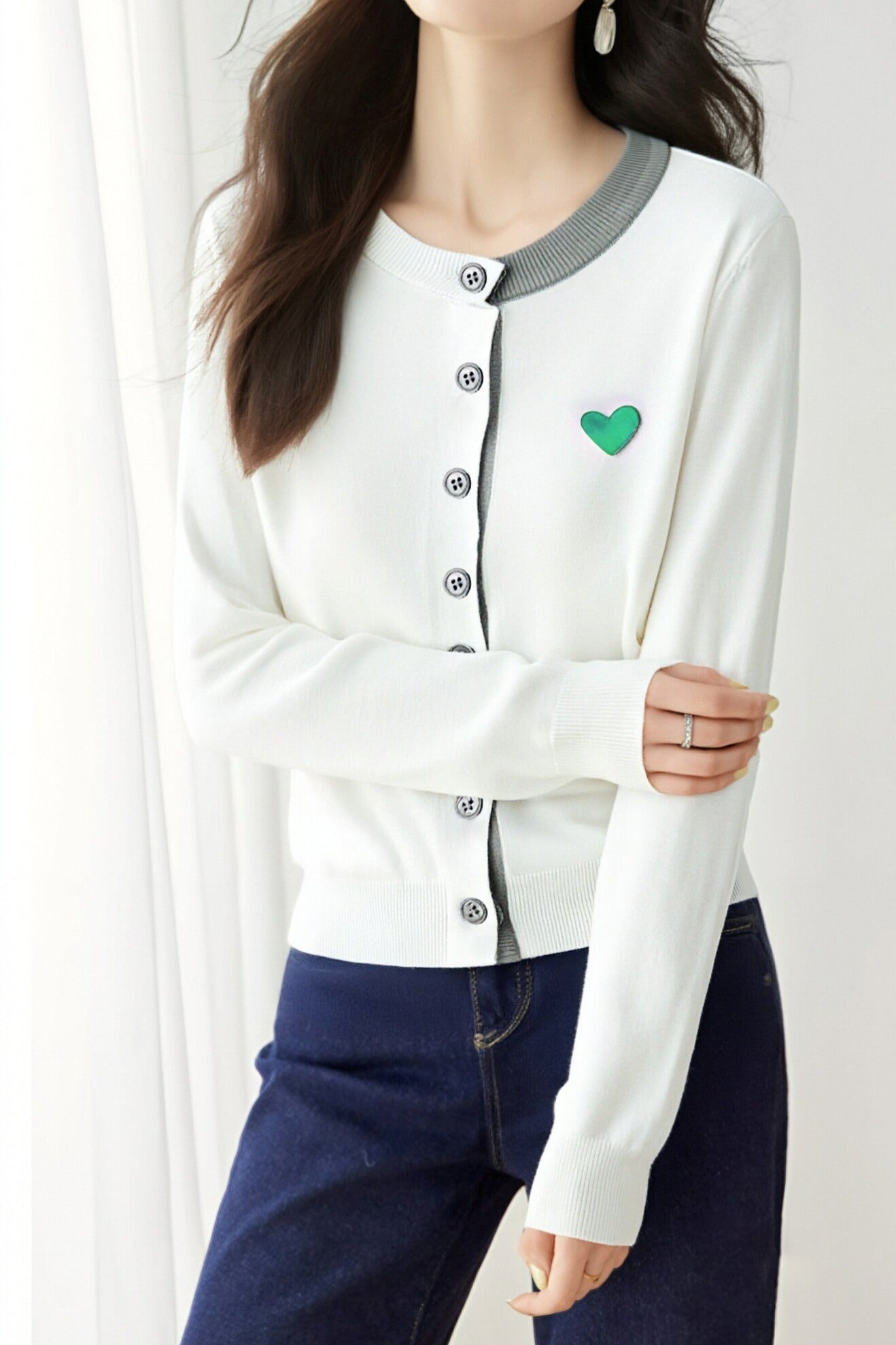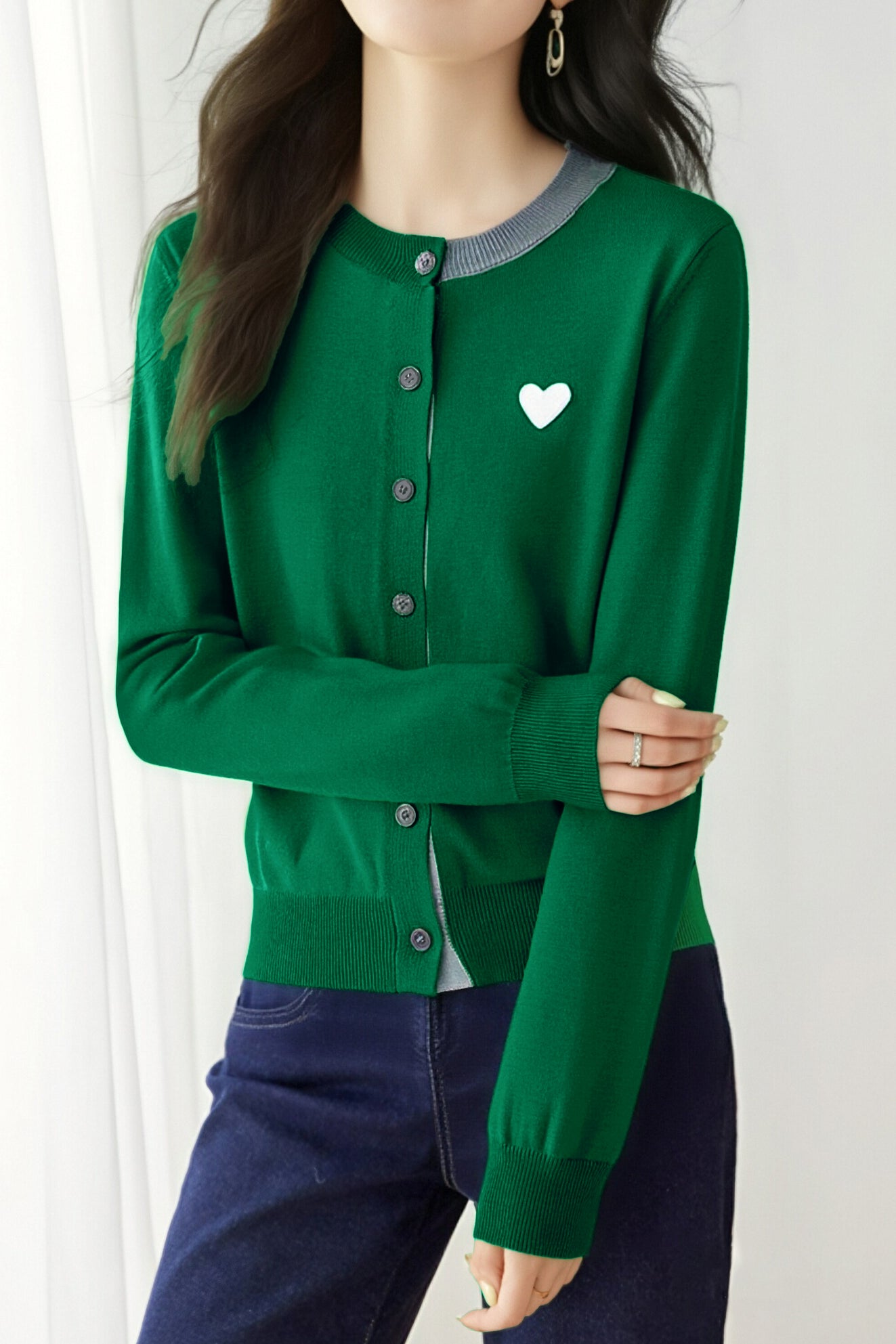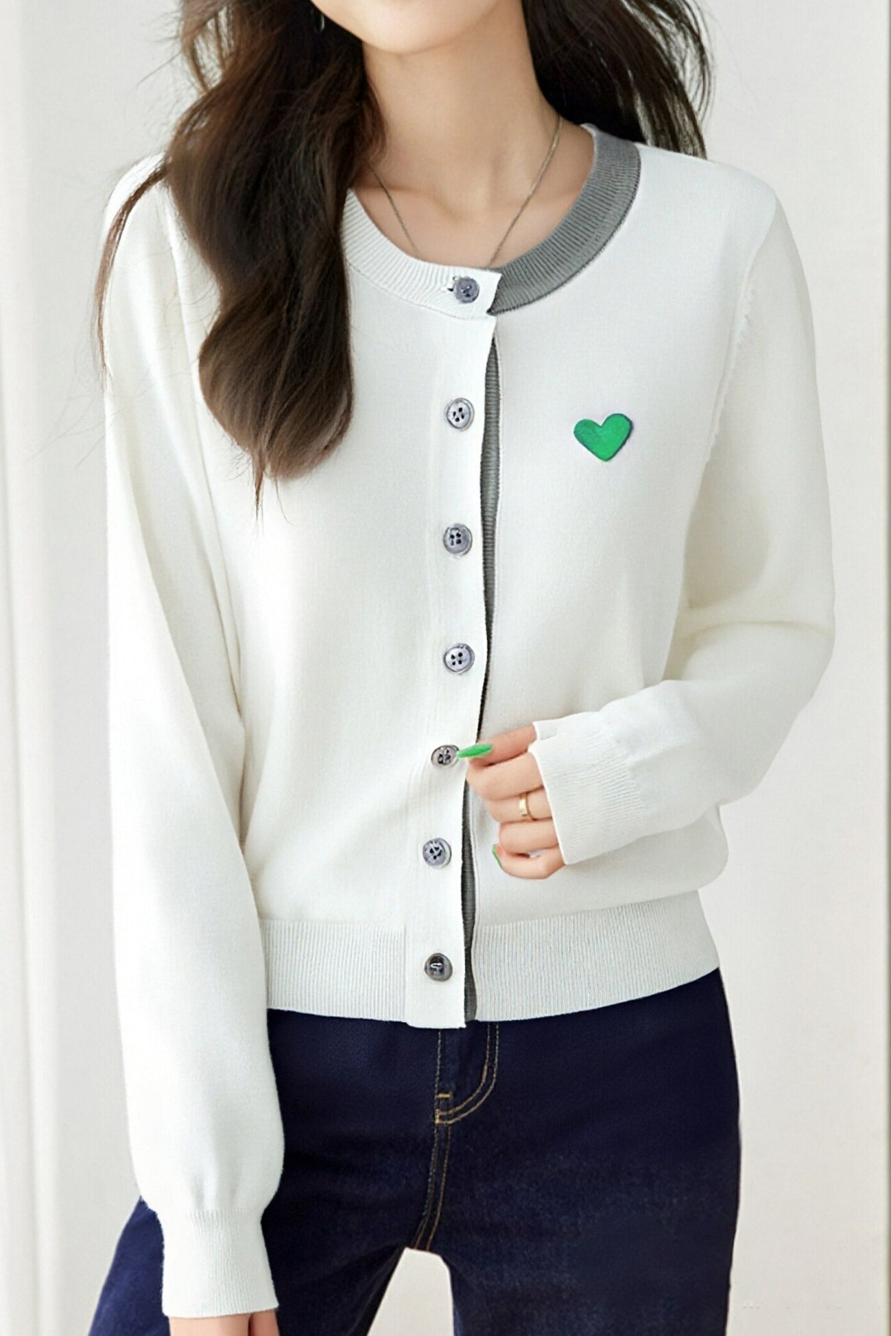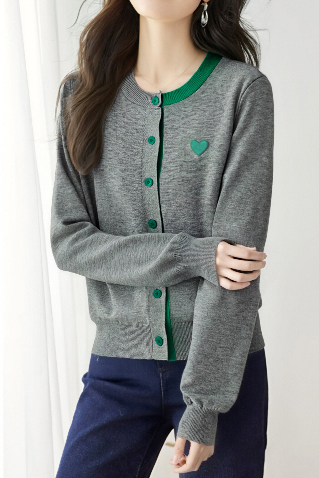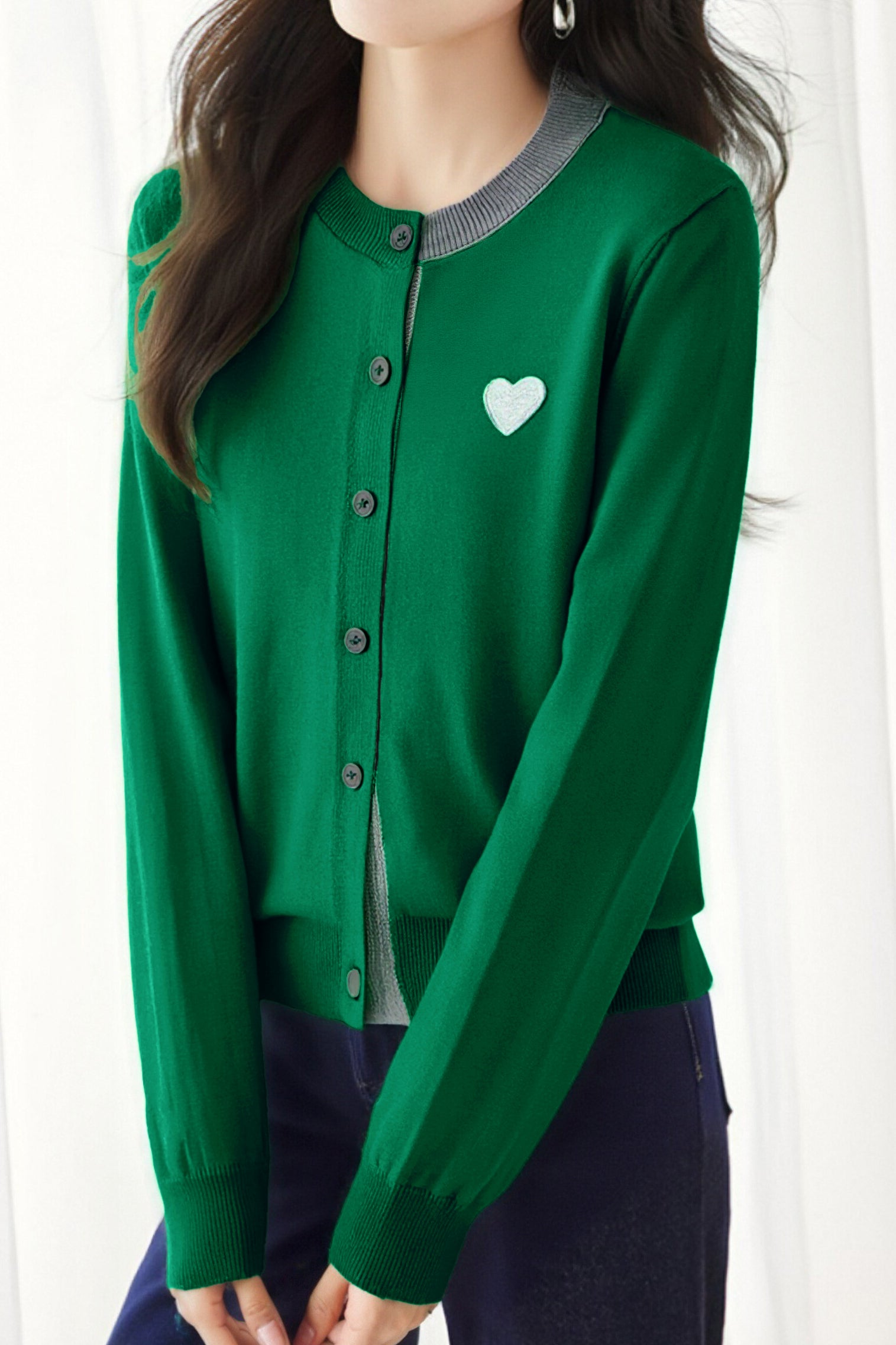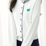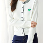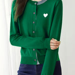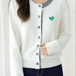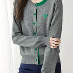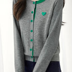 Knitted cardigan,loose fit,heart embroidery decoration on chest,color-block design |