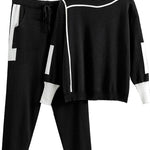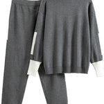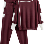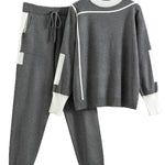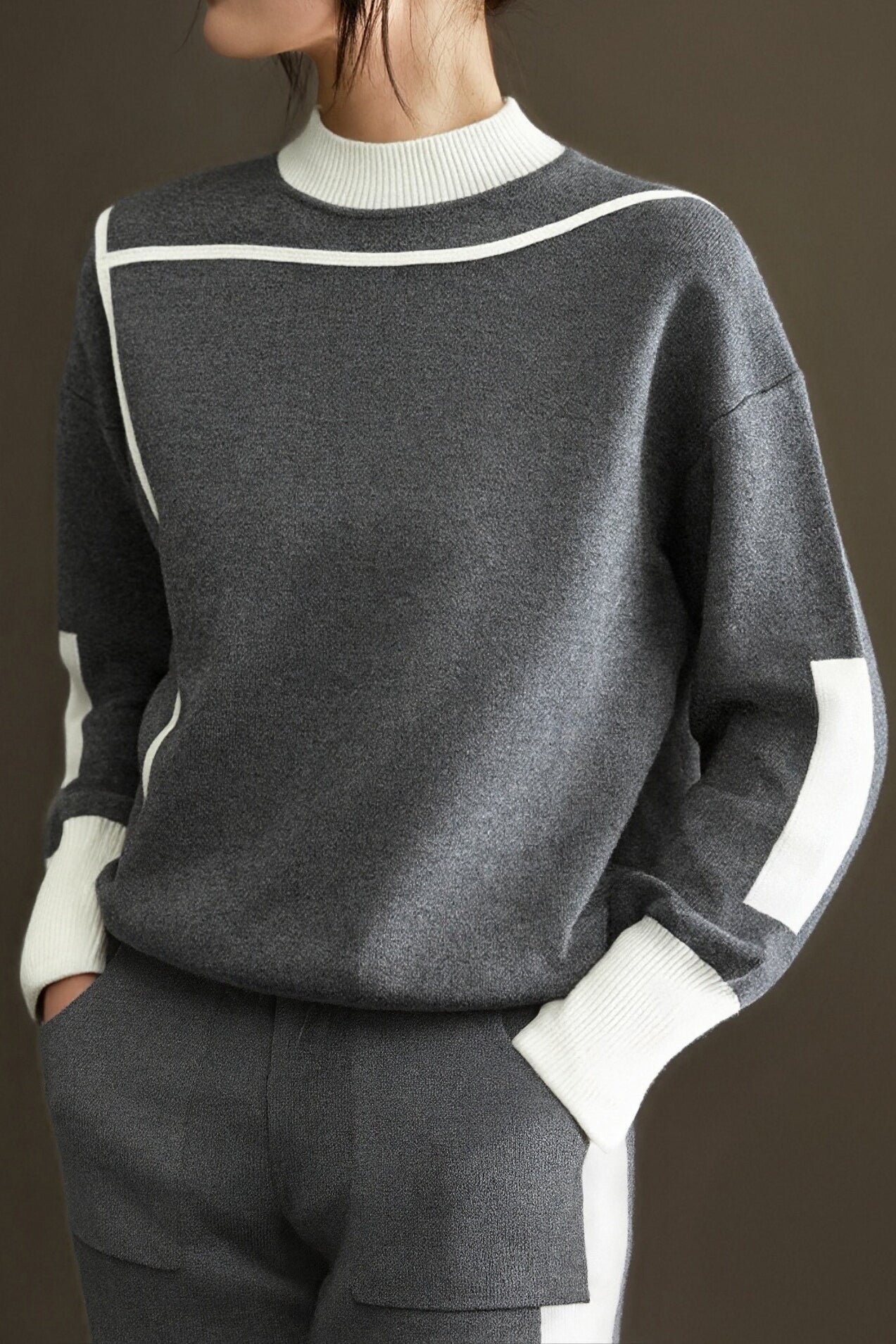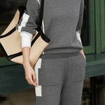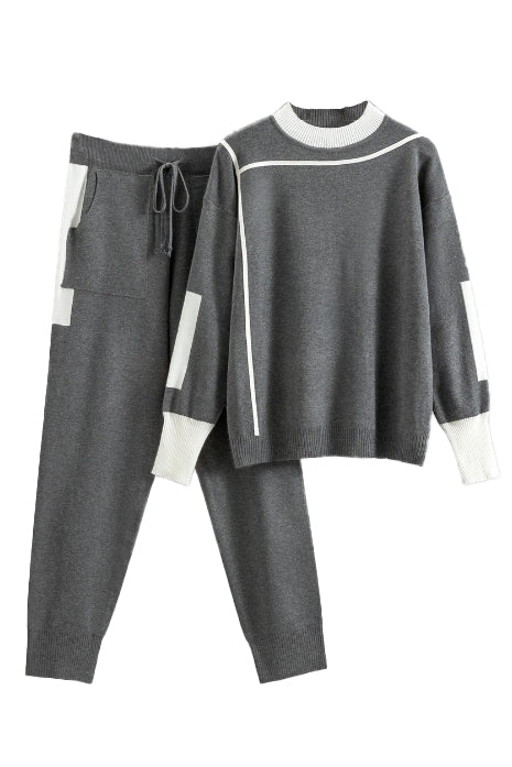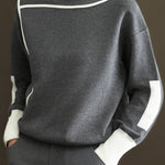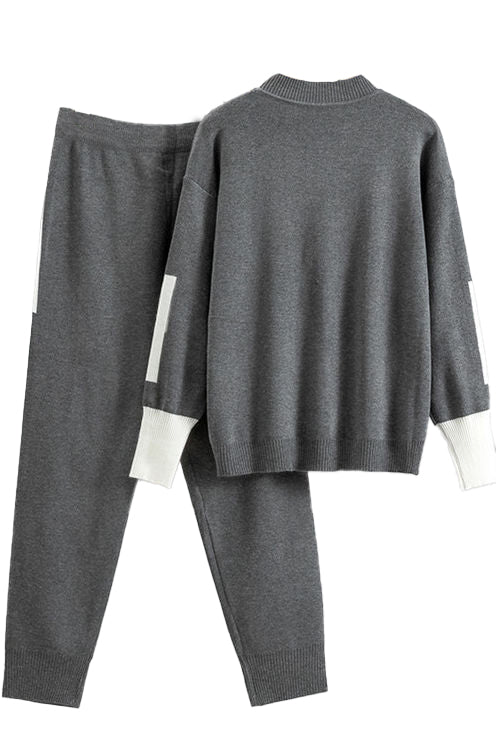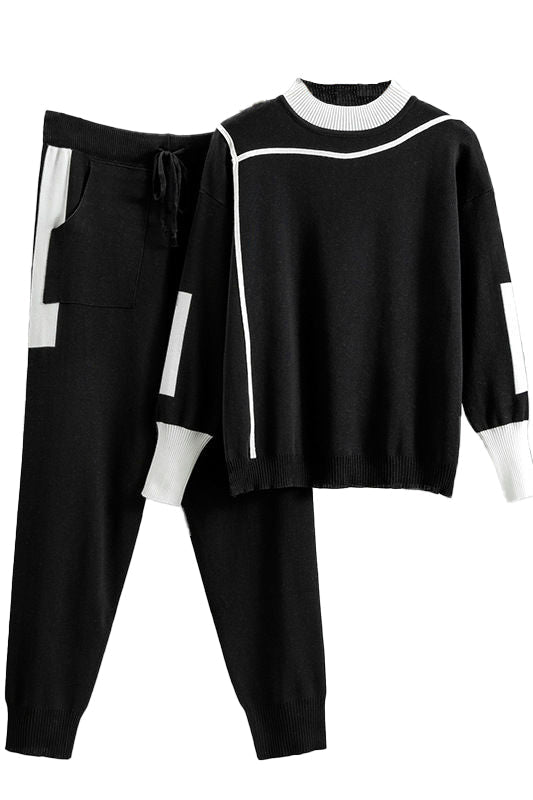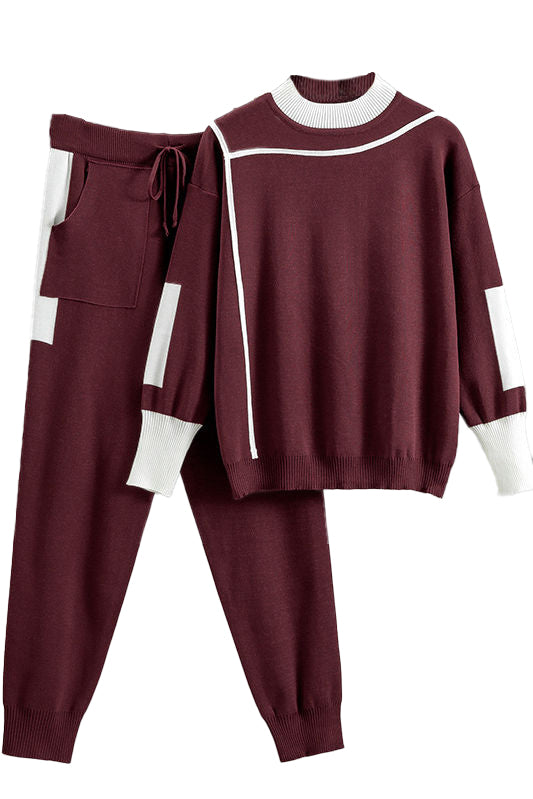 Knitted 2-piece set,pullover top matched with cuffed pants in loose fit,color-block stripes design on body |