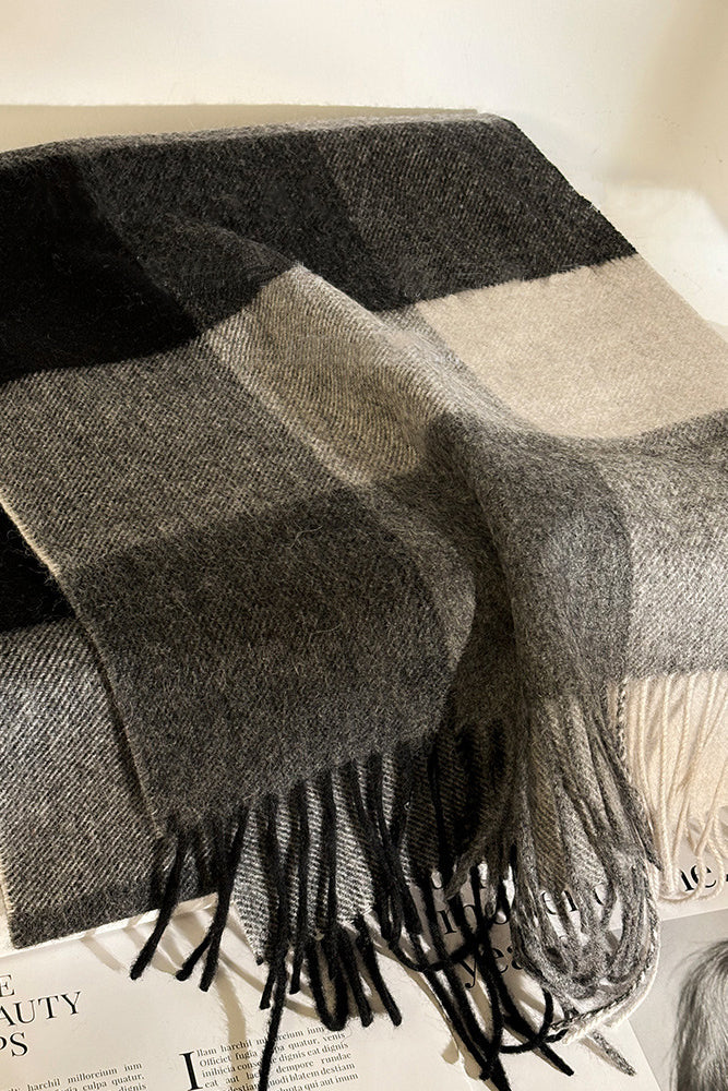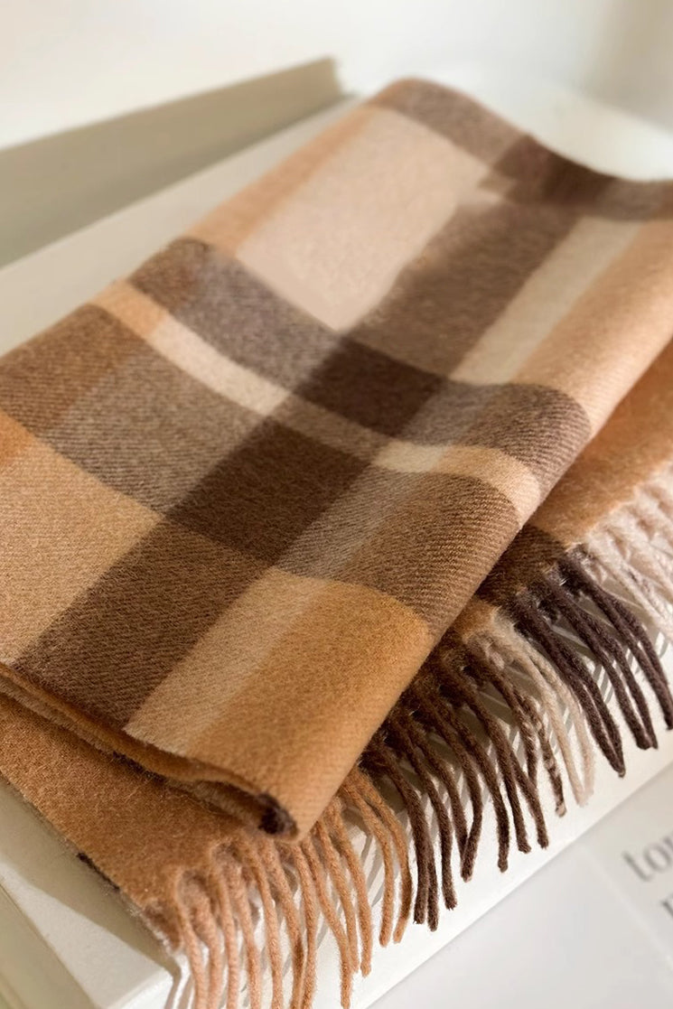 Scarf,skin-friendly soft fabric,retro plaid fringe design |