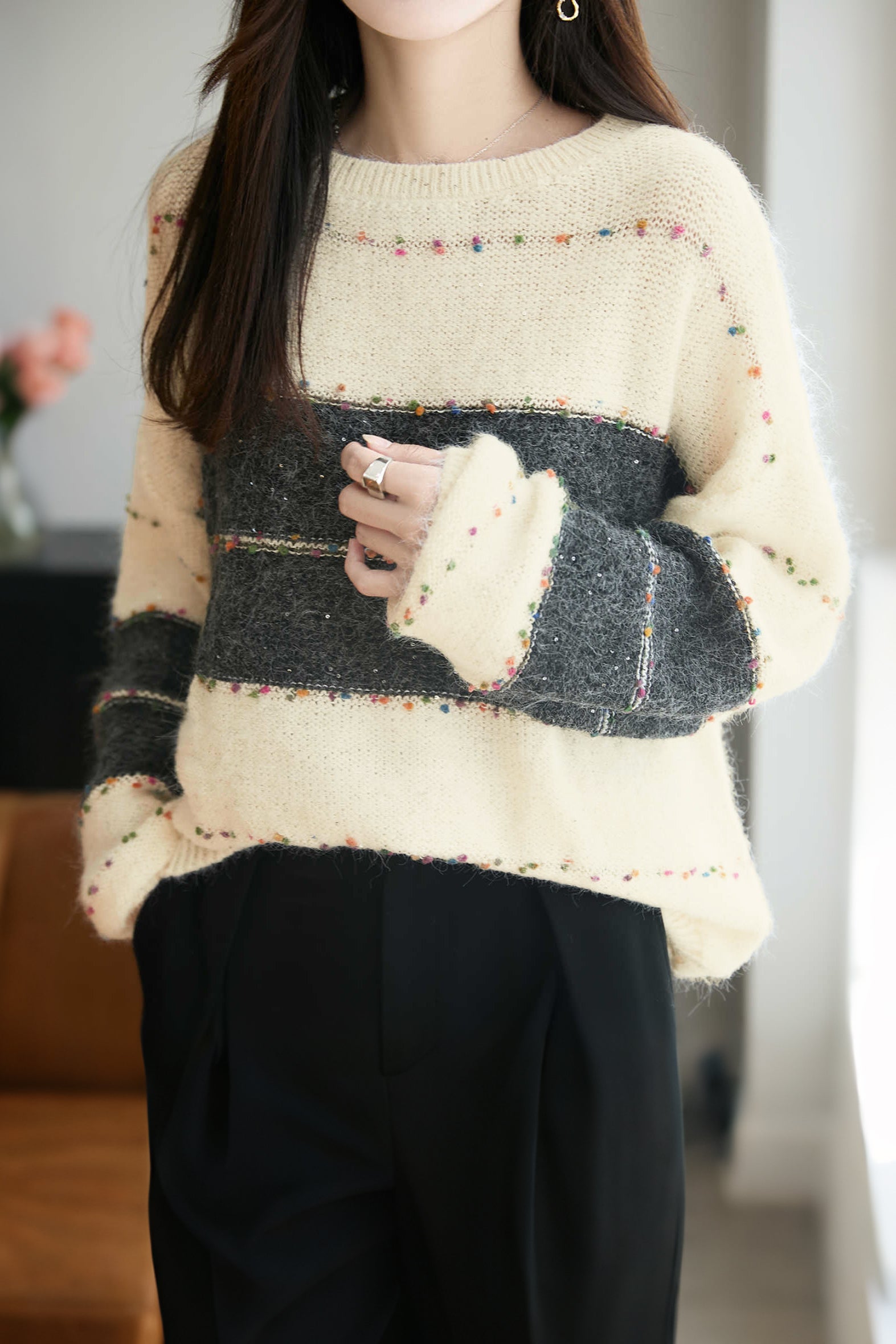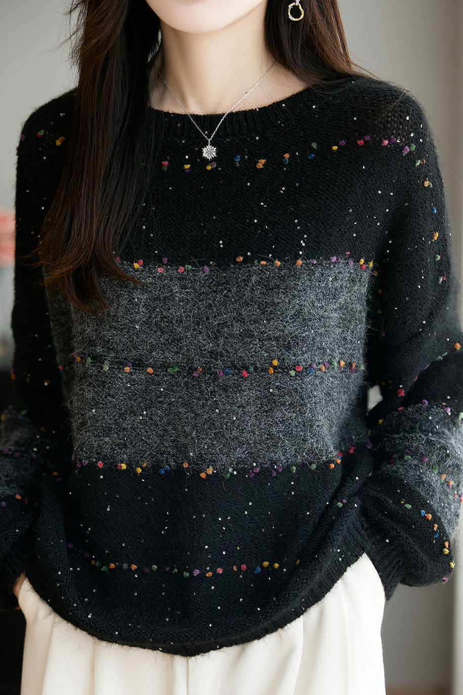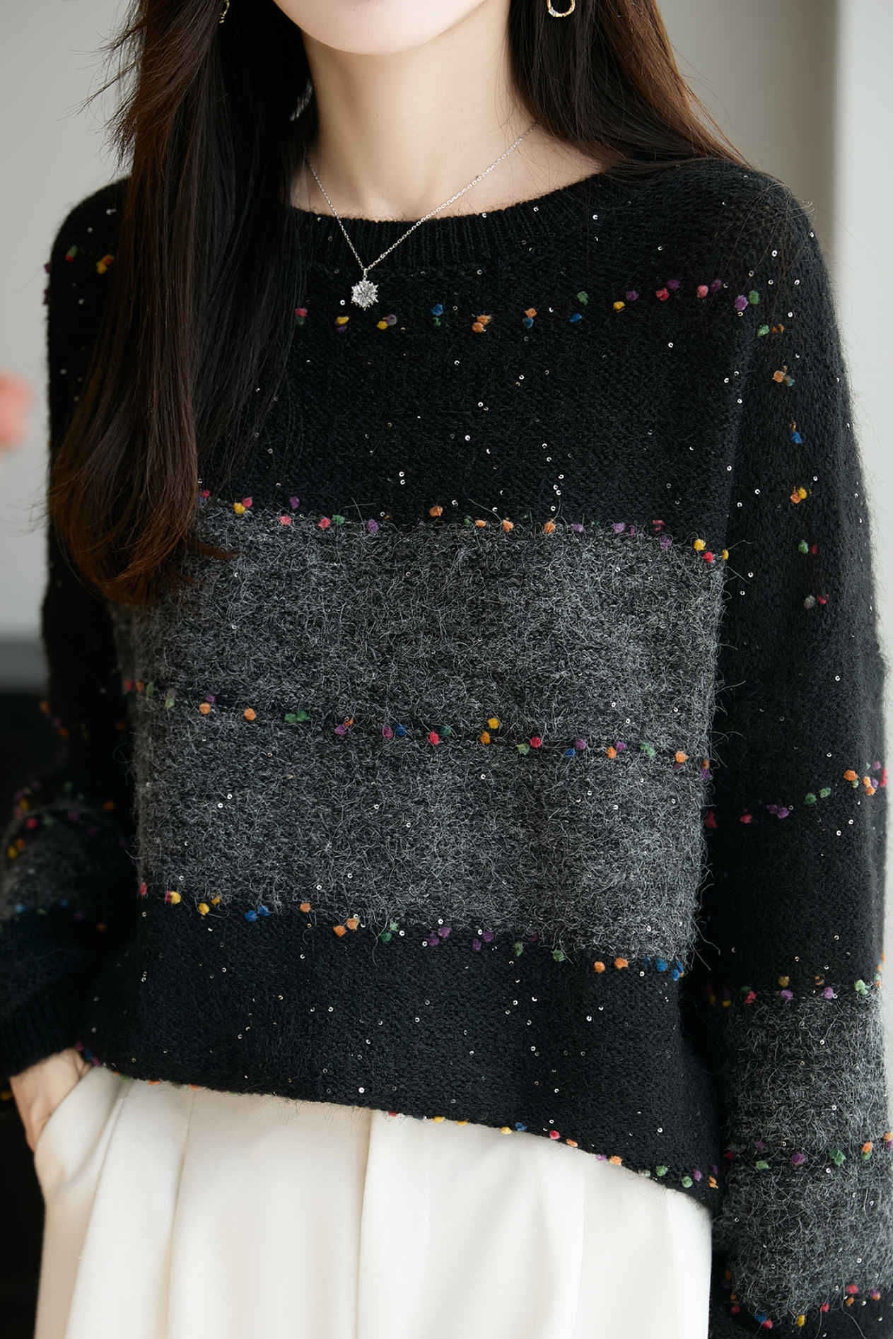 Casual Versatile Fine Glitter Striped Confetti Sweater