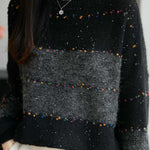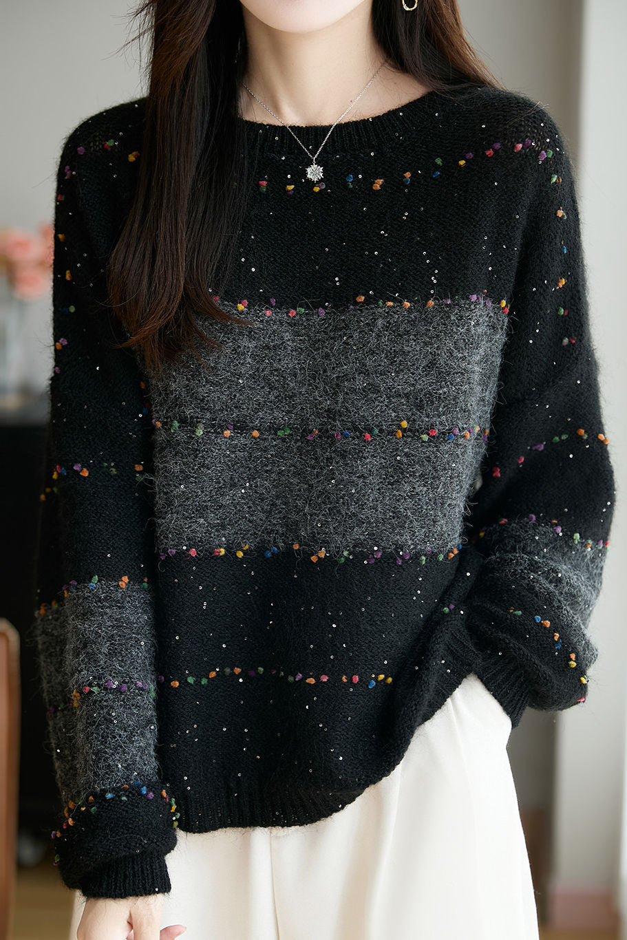 Pullover sweater,paneled fine glitter striped pullover loose fit,with fine glitter and confetti design on body |