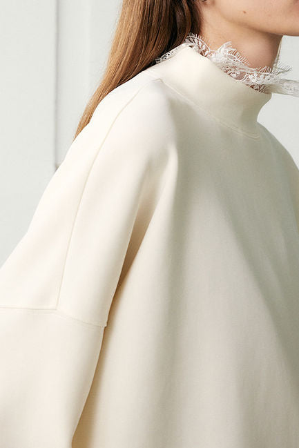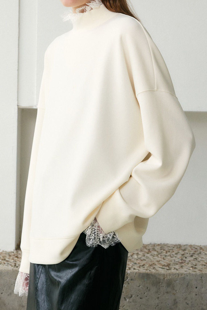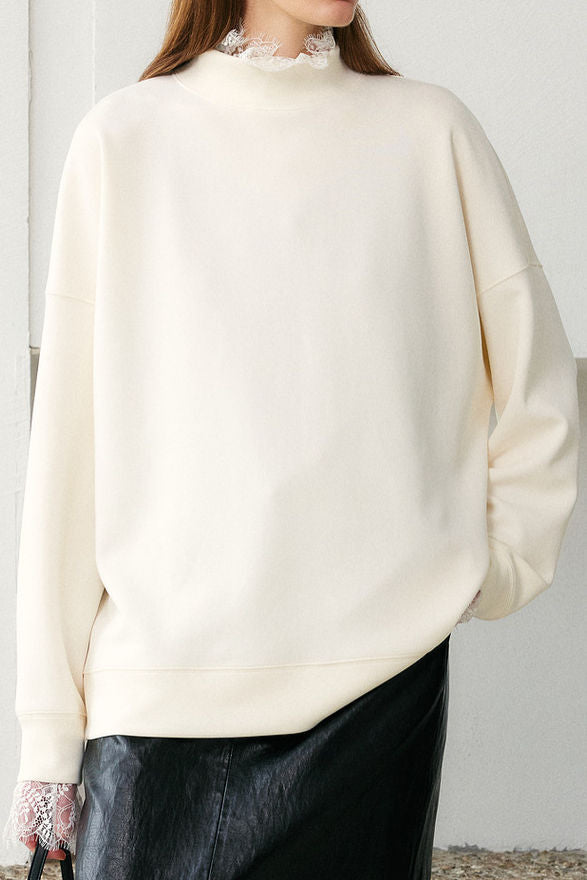 Exquisite Elegant Lace-Paneled Mock Neck Sweatshirt