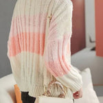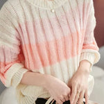 Sweater,crew neck pullover loose fit,with color-block gradient design on body |
