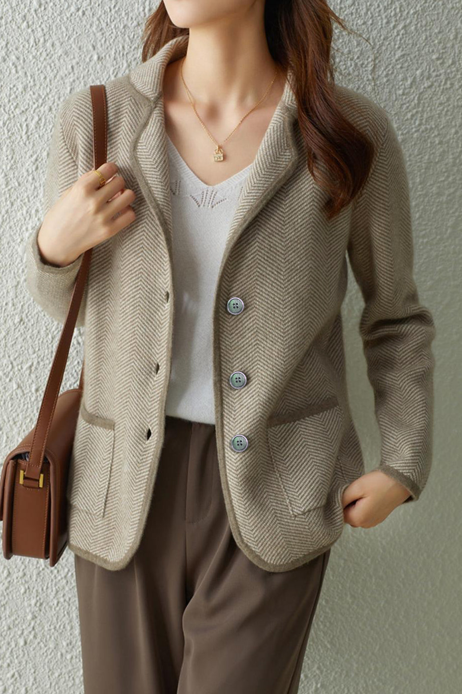 Coat,front center with suit collar shape and openable buttons,accompanied by two patch pockets design |
