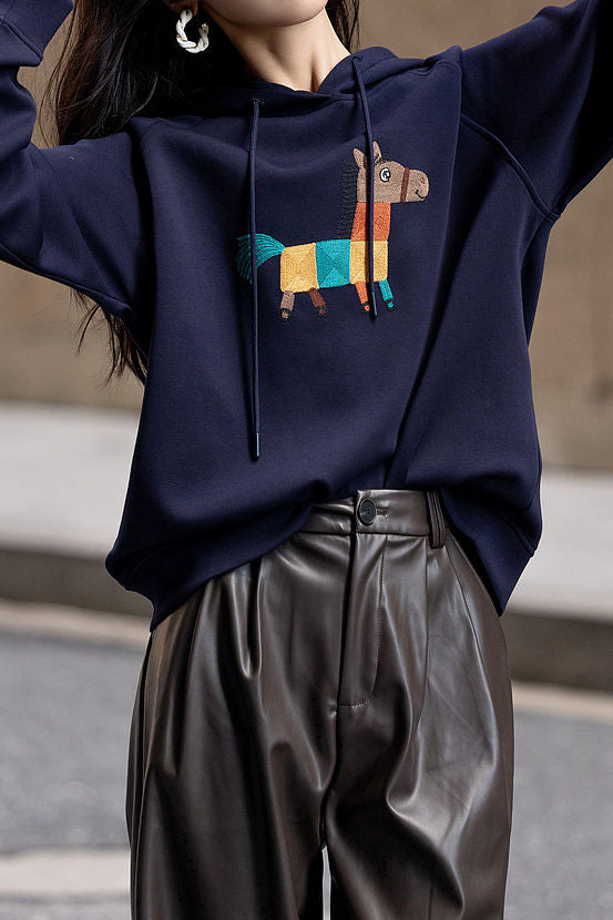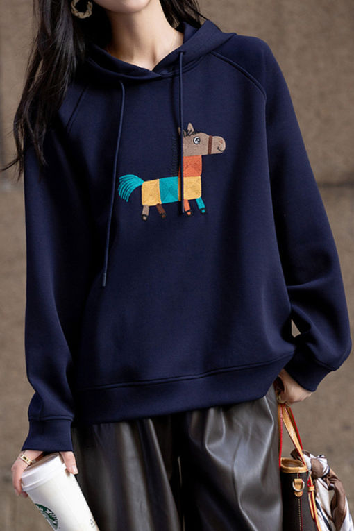 Hooded sweatshirt,hooded long-sleeve loose fit,front panel decorated with pony print pattern |