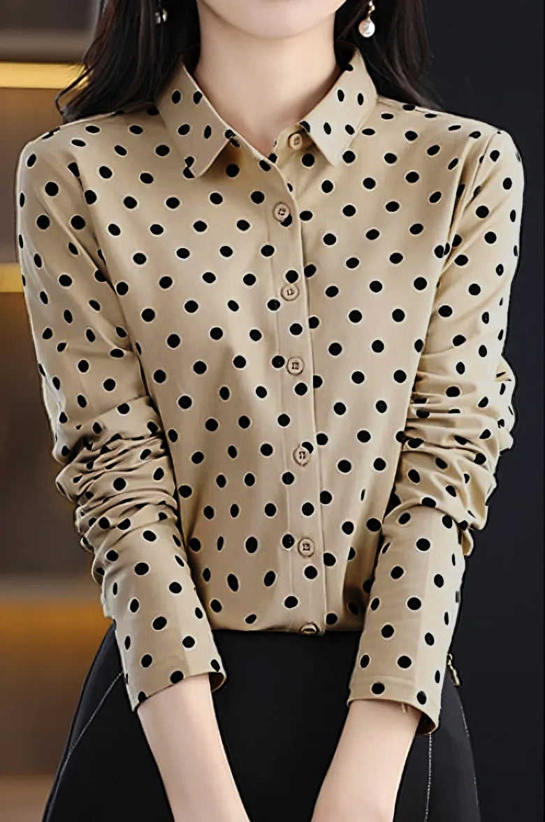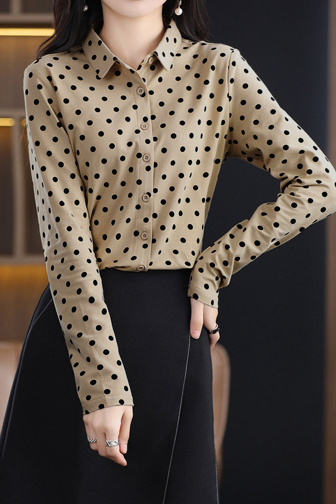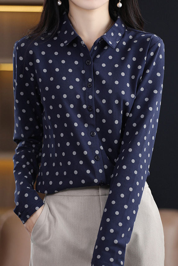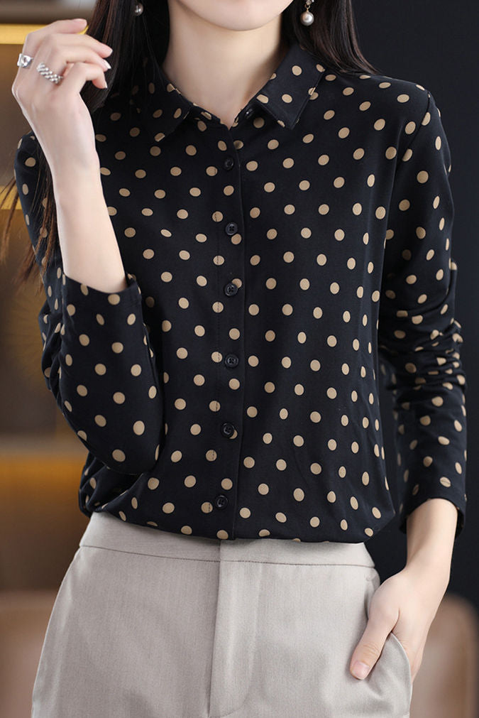Casual Versatile Polka Dot Long-Sleeve Lapel Shirt