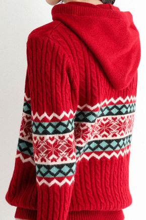 Casual Christmas Snowflake Ribbed Hooded Sweater