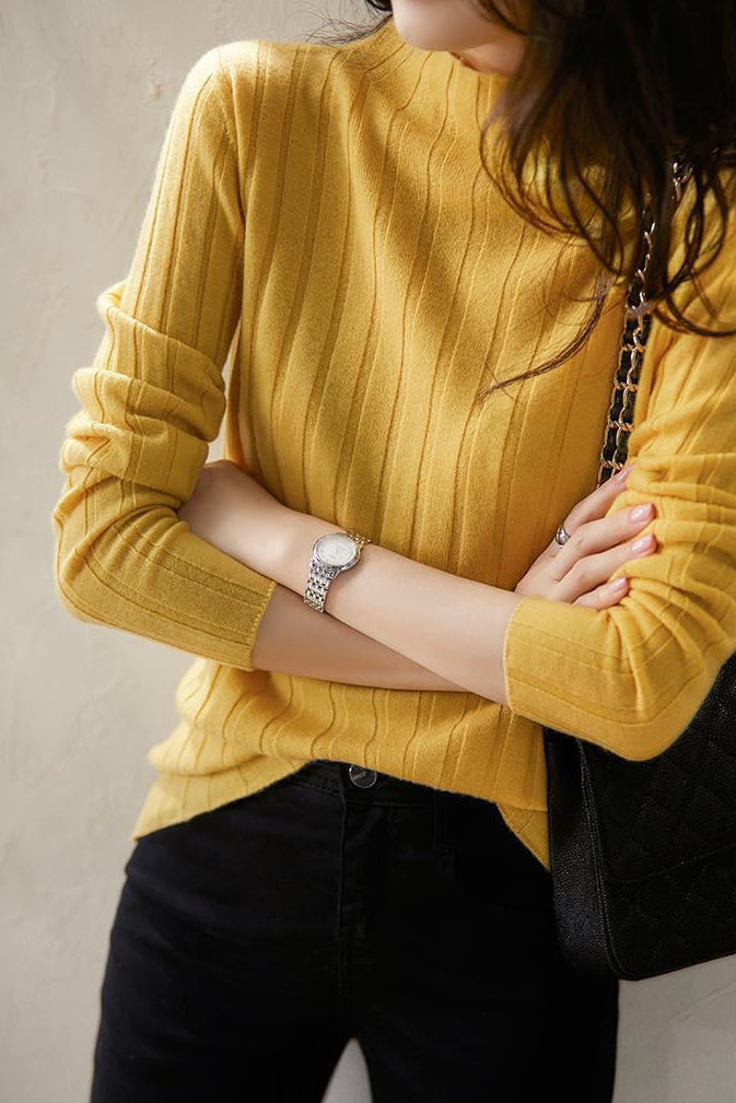 Loose Lightweight Knit Base Layer Top with half-high neck, long sleeves, and a relaxed fit |