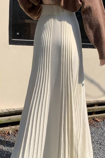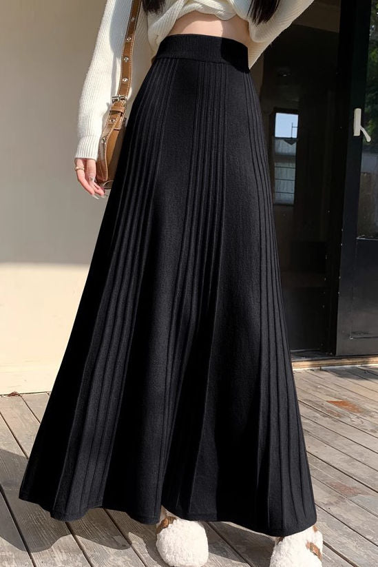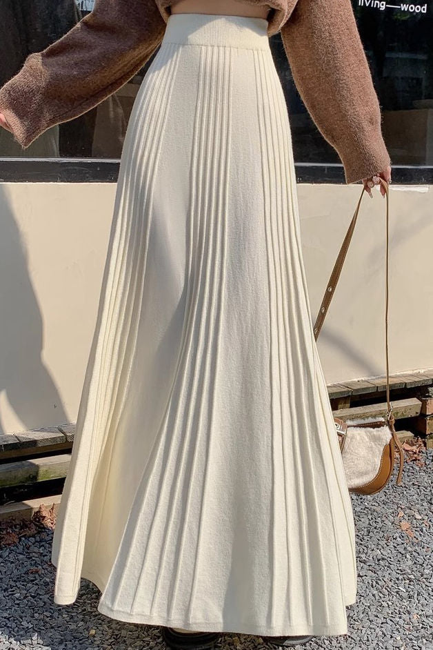Midi skirt,loose long a-line skirt fit,full-body with spaced vertical ribs as decorative pleated shape  |