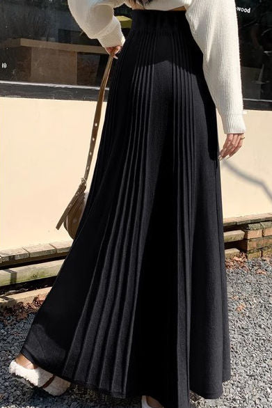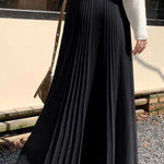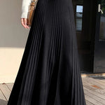 Casual Versatile Solid-Color Pleated Midi Skirt