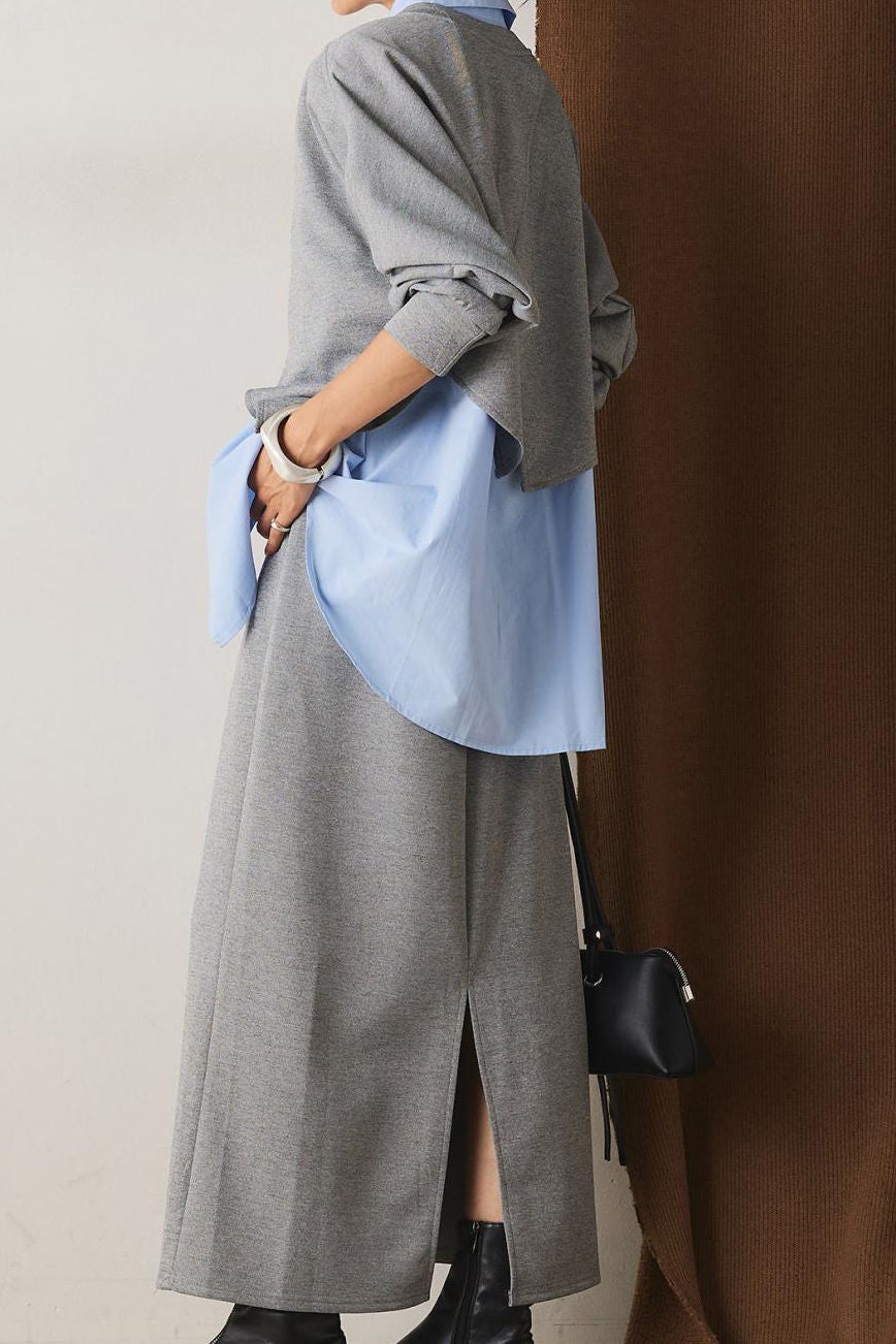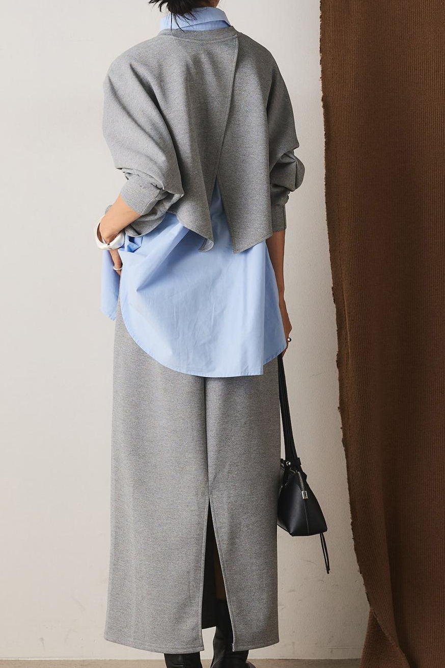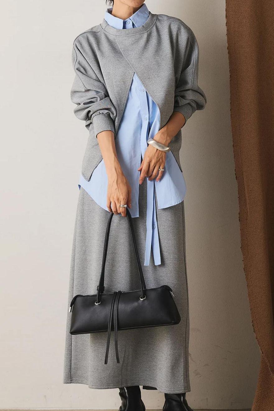 Overlay shirt skirt 3-piece set,shirt is sleeveless loose fit,front center with openable buttons to abdomen with slit,attached with decorative shirt fabric tie below;overlay is crew neck pullover long-sleeve slit fit,front and back inverted v overlapping slit design;overlay,shirt and midi skirt form color-block design  |