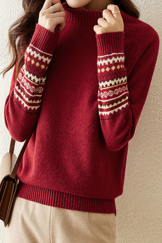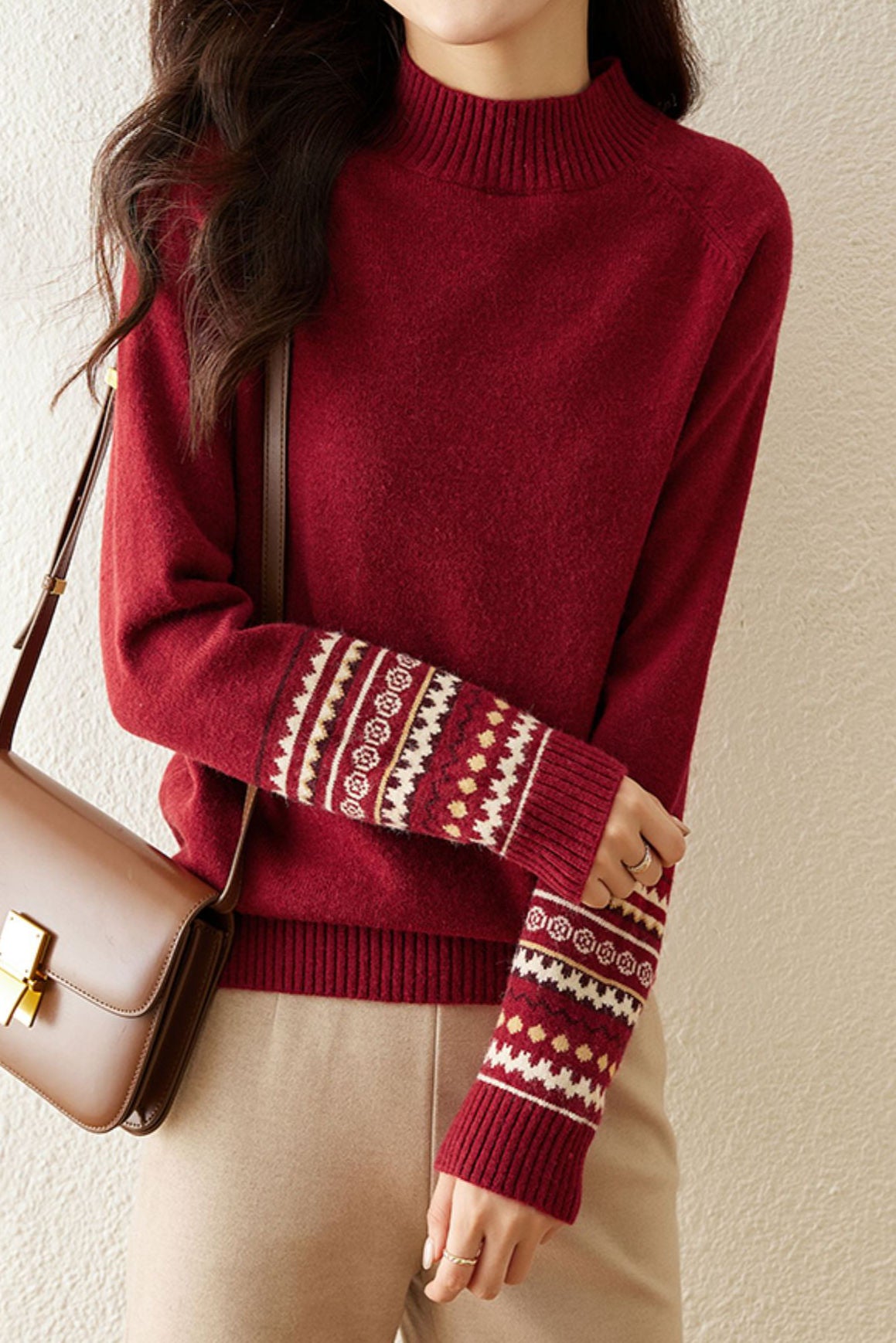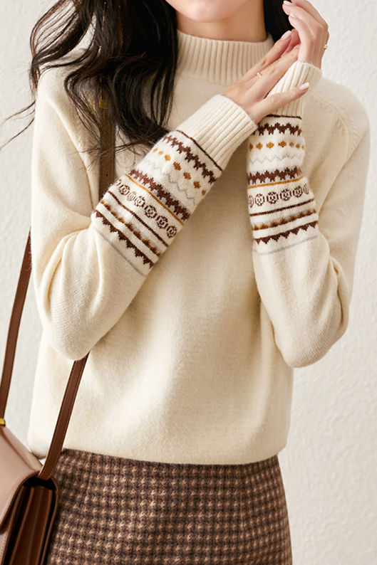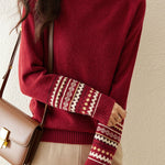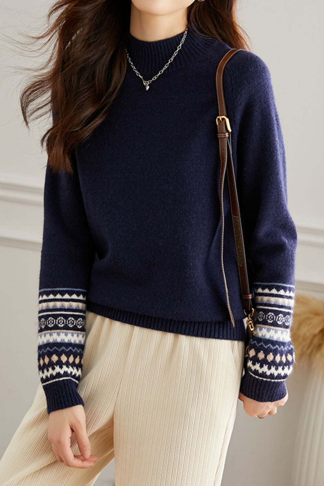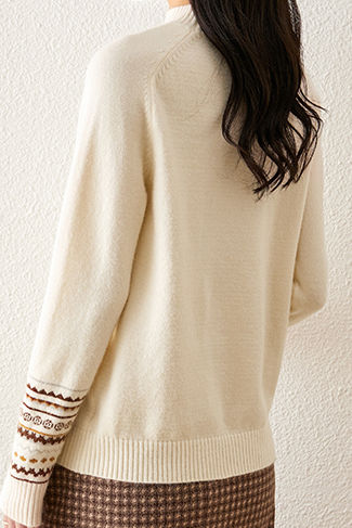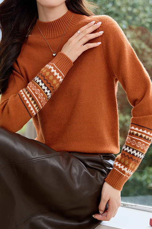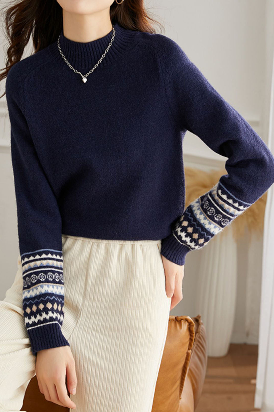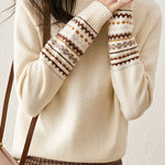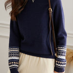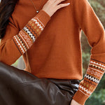 Pullover sweater,crew neck long-sleeve loose fit,two sleeves with complex color-block jacquard striped design |