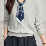 Casual Versatile Crew Neck Scarf-Tie Cardigan